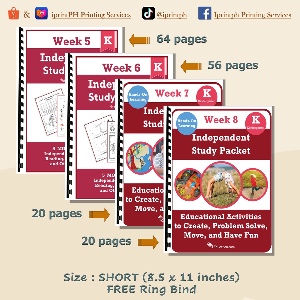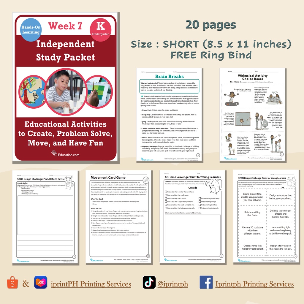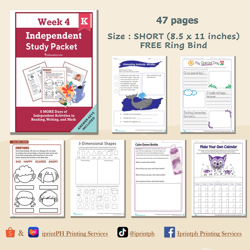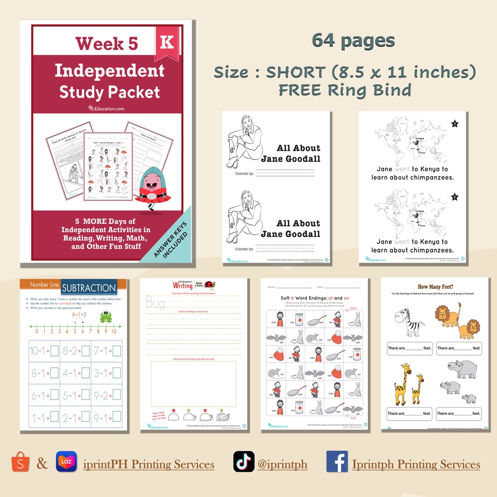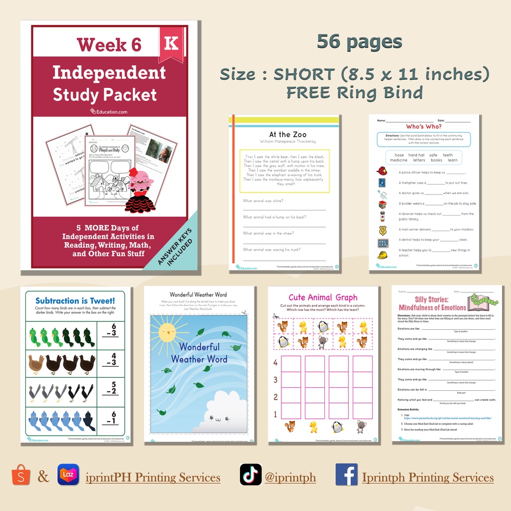 KINDERGARTEN Independent Study Packet (Worksheets / Workbooks)