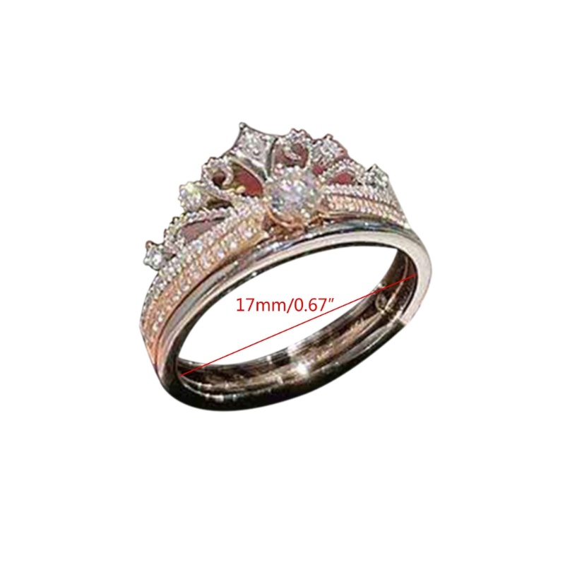 KING 2 Pieces Princess-Queen-Crown Ring Set Princess-Crown Promise Wedding Rings Engagement Castle Tiara Ring Fashion Je