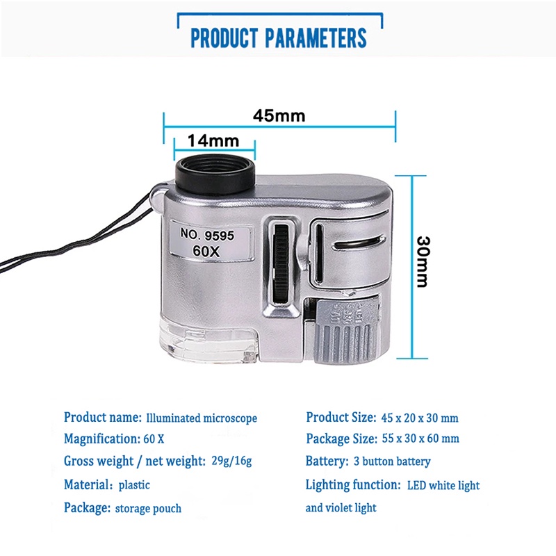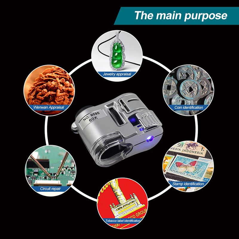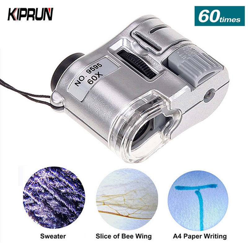 KIPRUN 60X Handheld Magnifying Glass, Mini Pocket Microscope Loupe Currency Detector Magnifier, With LED Light