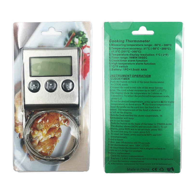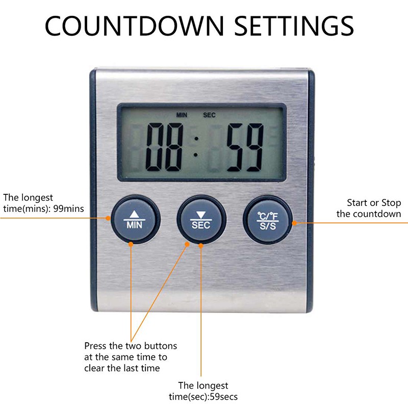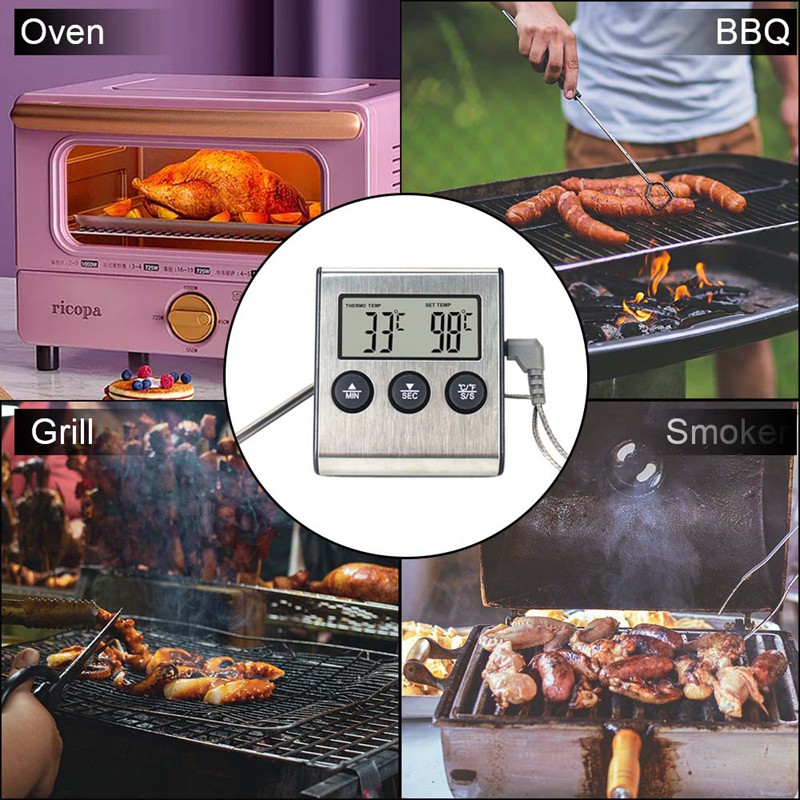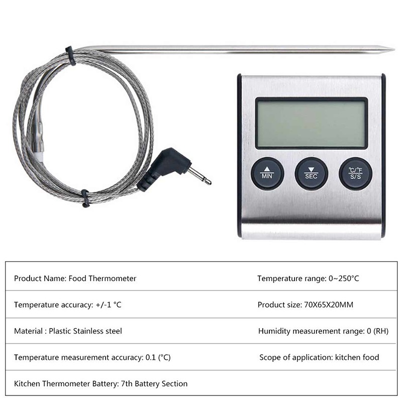 KIPRUN Digital Oven Thermometer Kitchen Food Cooking Meat BBQ Probe Thermometer with Stainless Steel Probe, Timer Alarm Clock Water Milk Temperature Cooking Tools