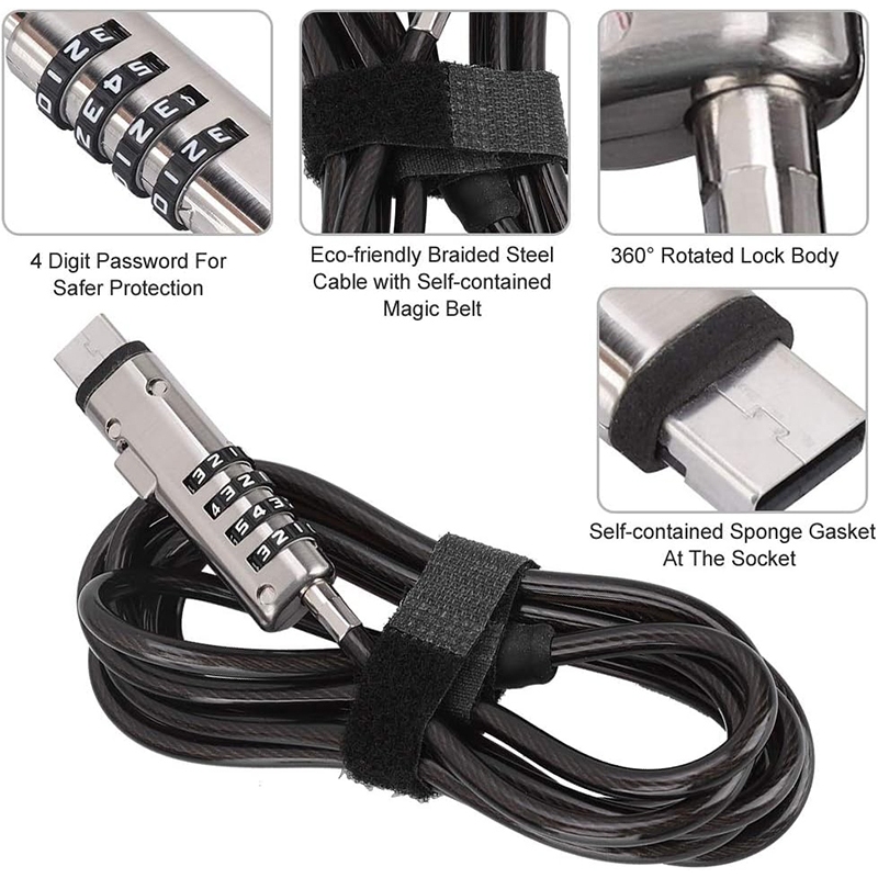KIPRUN Laptop Cable Lock, Computer Security Cable Lock, Alloy 4 Digital Password Anti Theft Notebook Protection, Universal USB Cable Security Laptop Lock