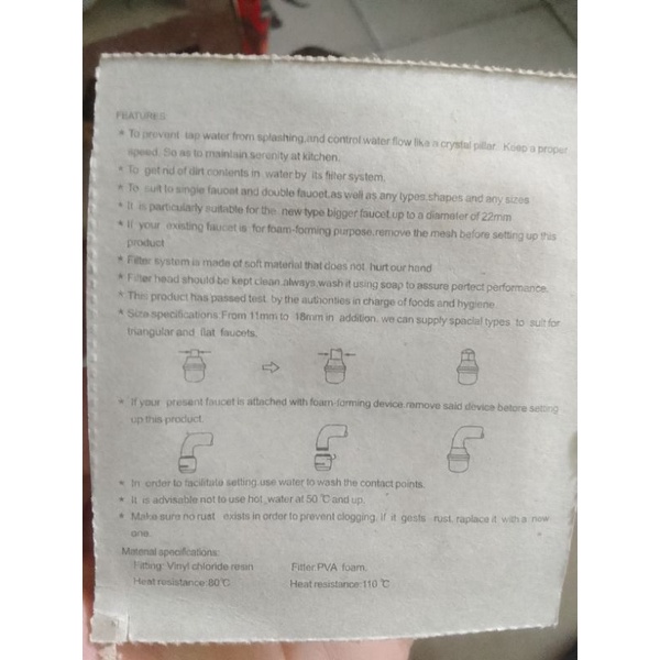 KITCHEN WATER FILTER FOAM FOR FAUCET SPONGE FAUCET FOR TAP WATER PANGFILTER SA GRIPO SEDIMENT FILTER