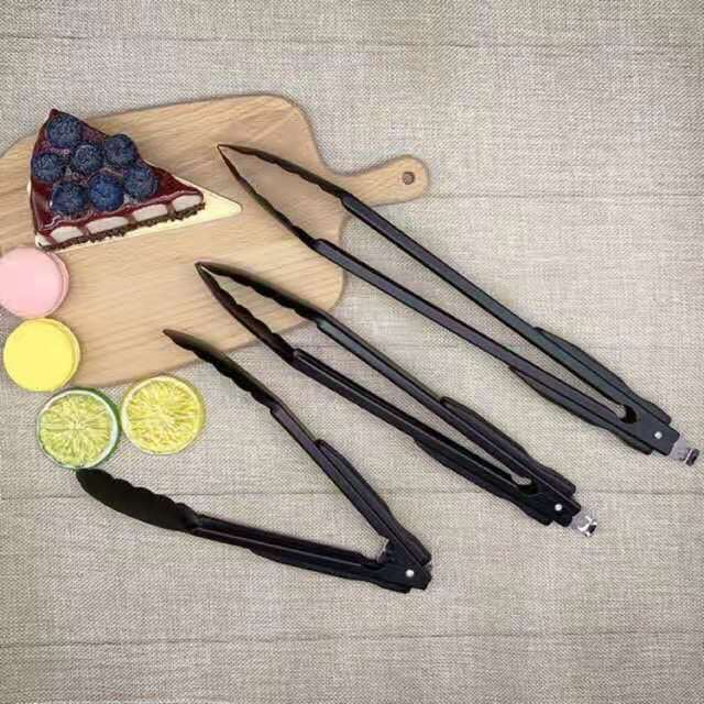 KITCHENWARE Stainless Steel Kitchen Black color food clip tong Bread clip Pastry Clamp