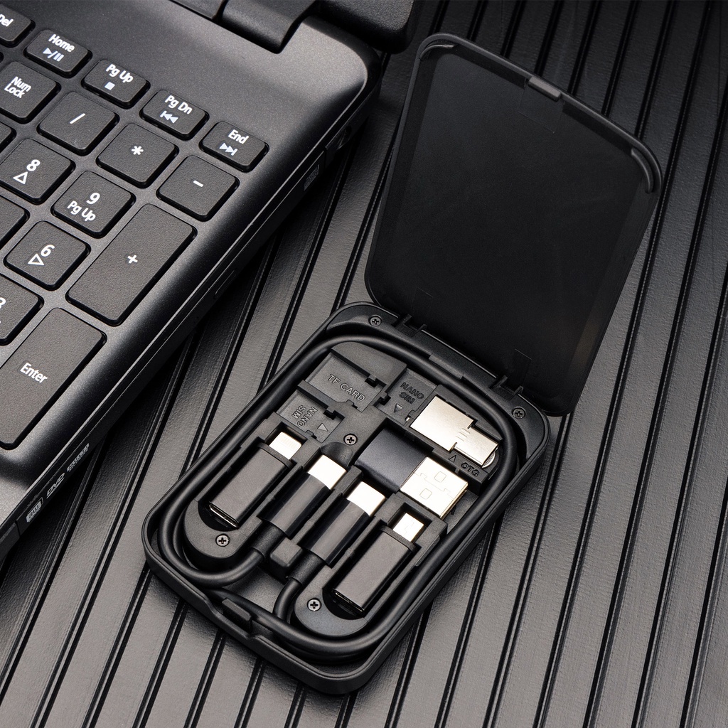 KIWI Multi-Functional Travel Cable Adapter Kit with USB-C Cable & USB-A Micro-USB Light OTG USB Cable Convertor Storage Box for Phone Pad Charging PC Computer Data Transfer