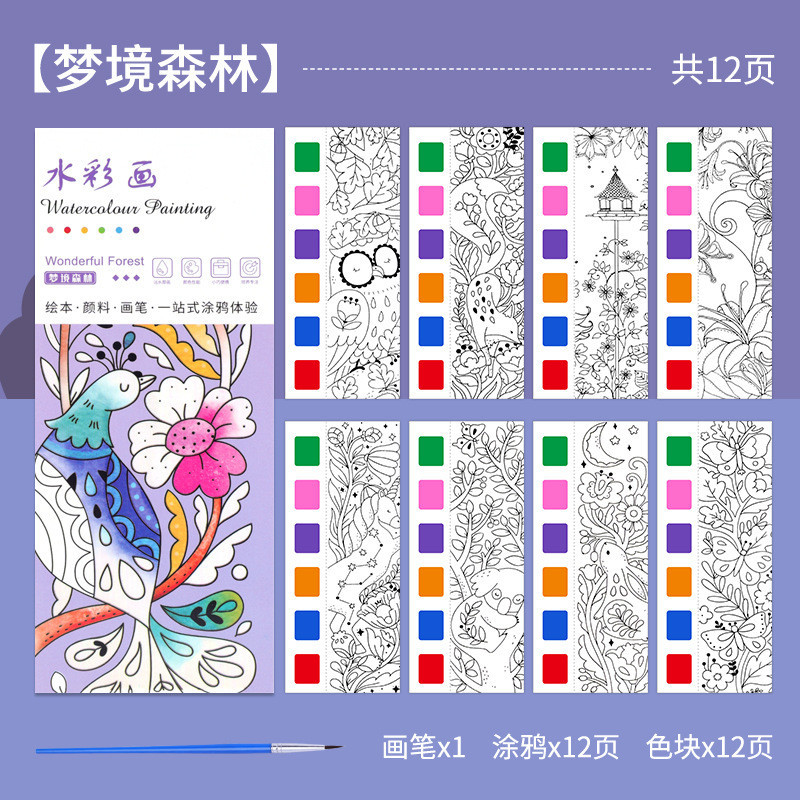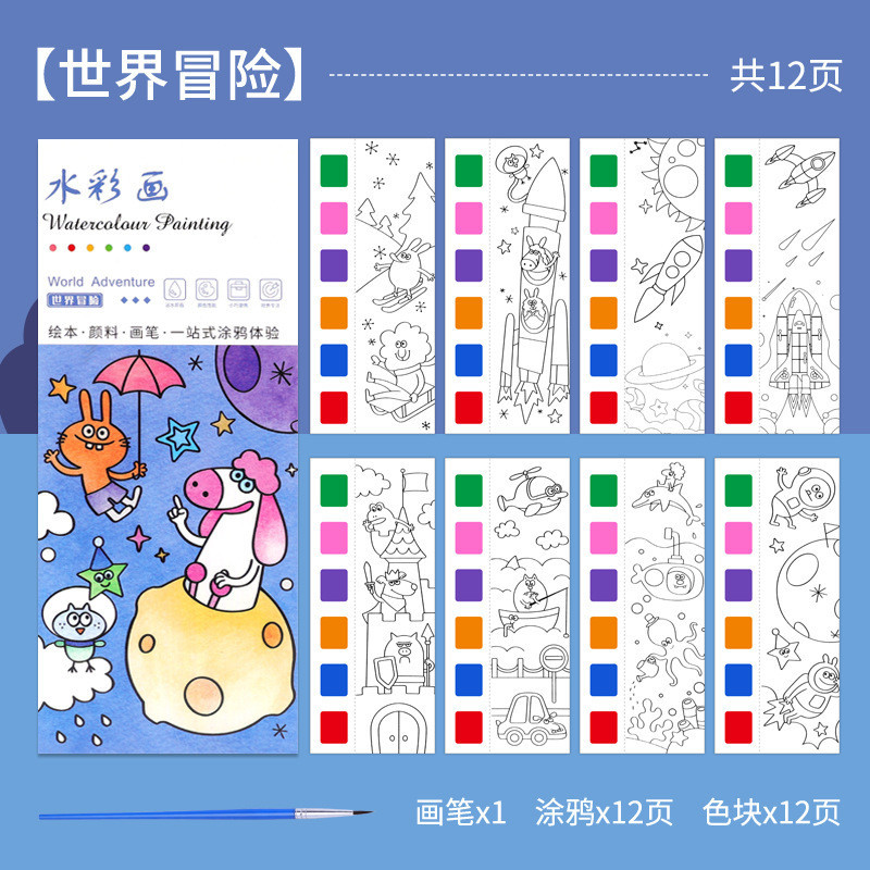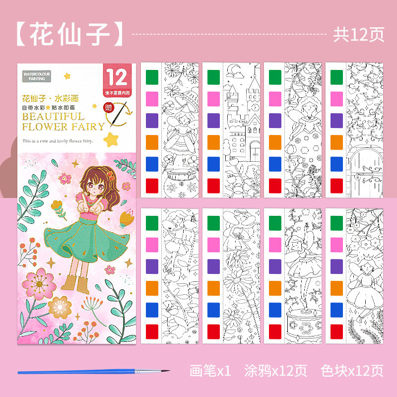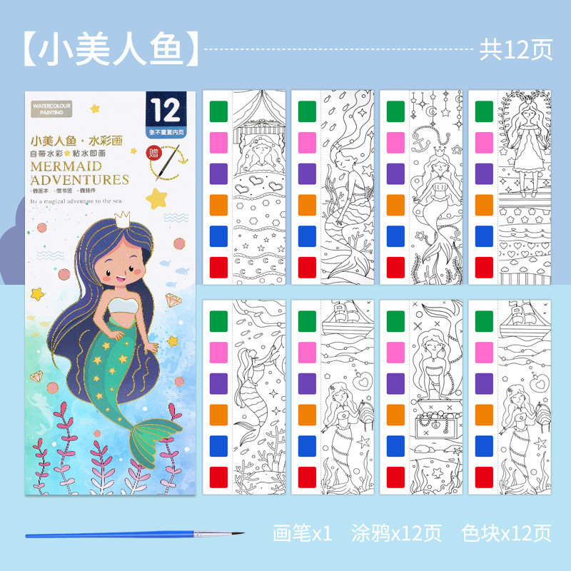 KIds Watercolor Coloring Book Sticky Notes Graffiti Drawing Coloring Book Kindergarten Comes with Pigment Gouache Portable Painting Book