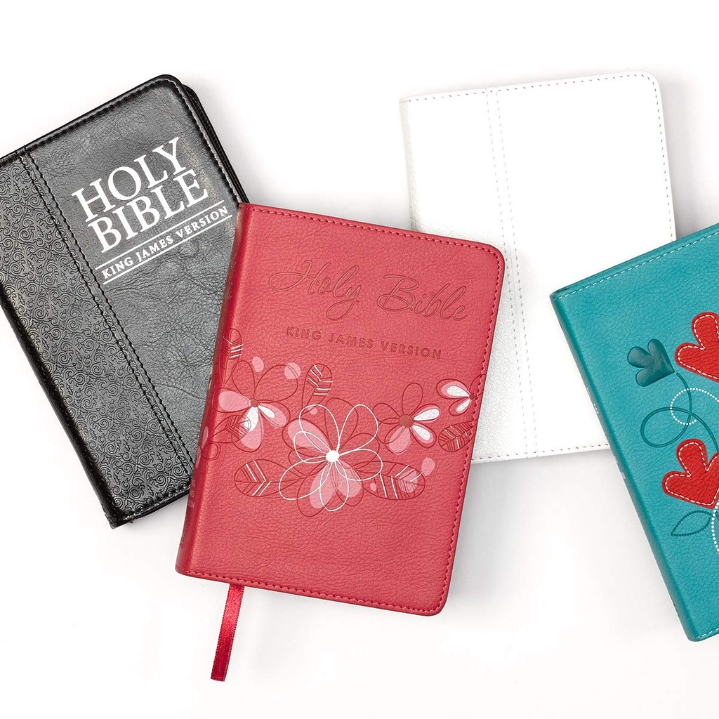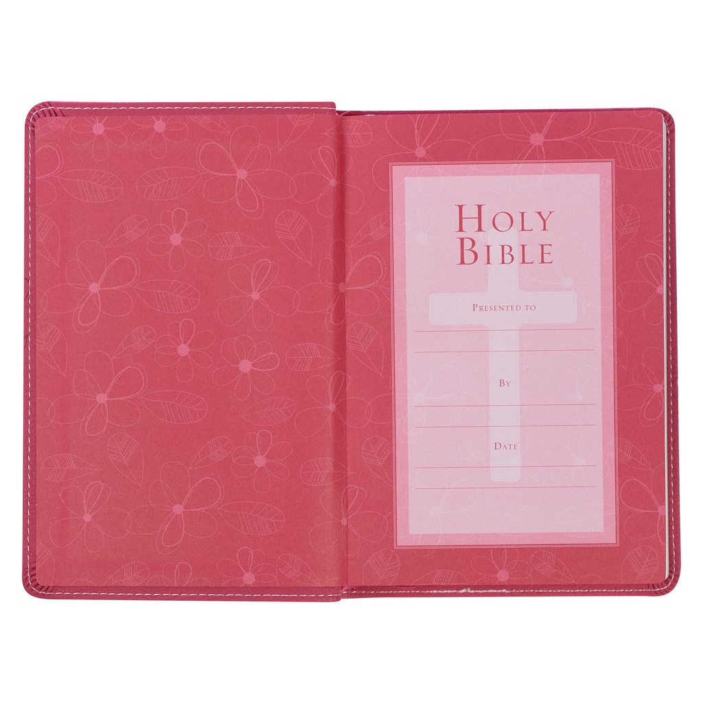 KJV009 - King James Version (KJV) Compact Floral Pink Faux Leather Holy Bible
