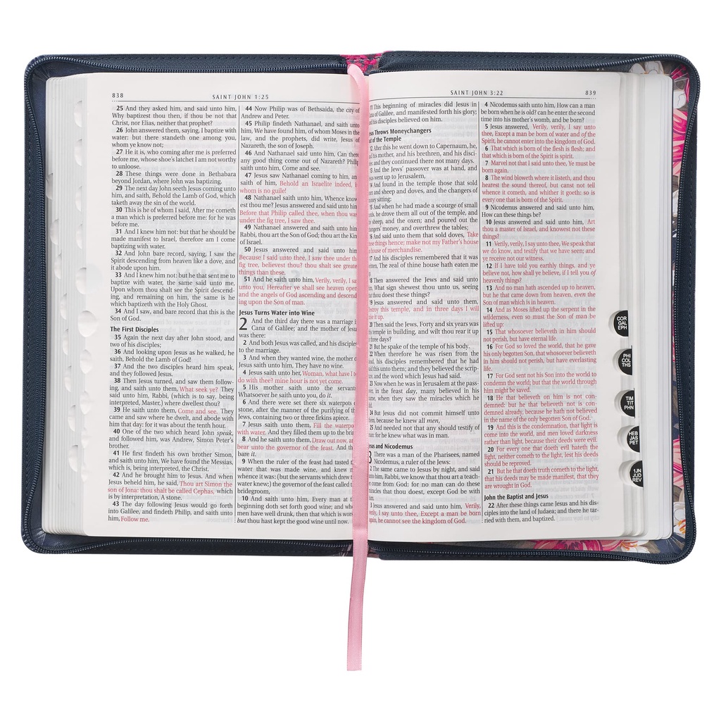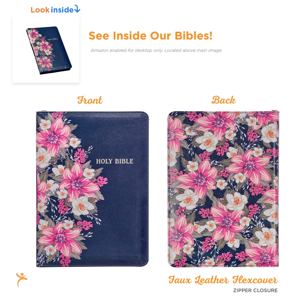 KJV175 - King James Version (KJV) Blue Floral Deluxe Gift with Zipper Closure Holy Bible
