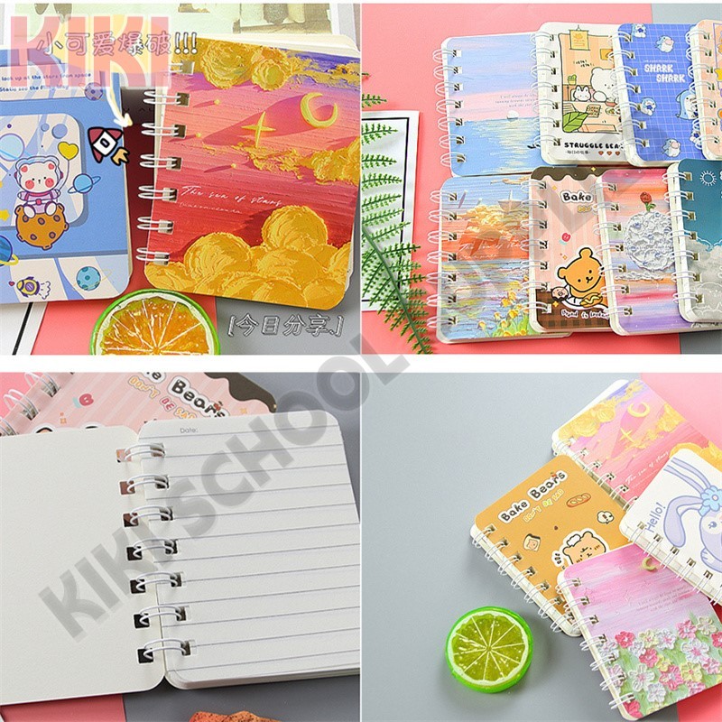 KK 1PC A7 Cartoon Student Mini Portable Cute Pocket Coil Notebook Office Notepads School Supplies