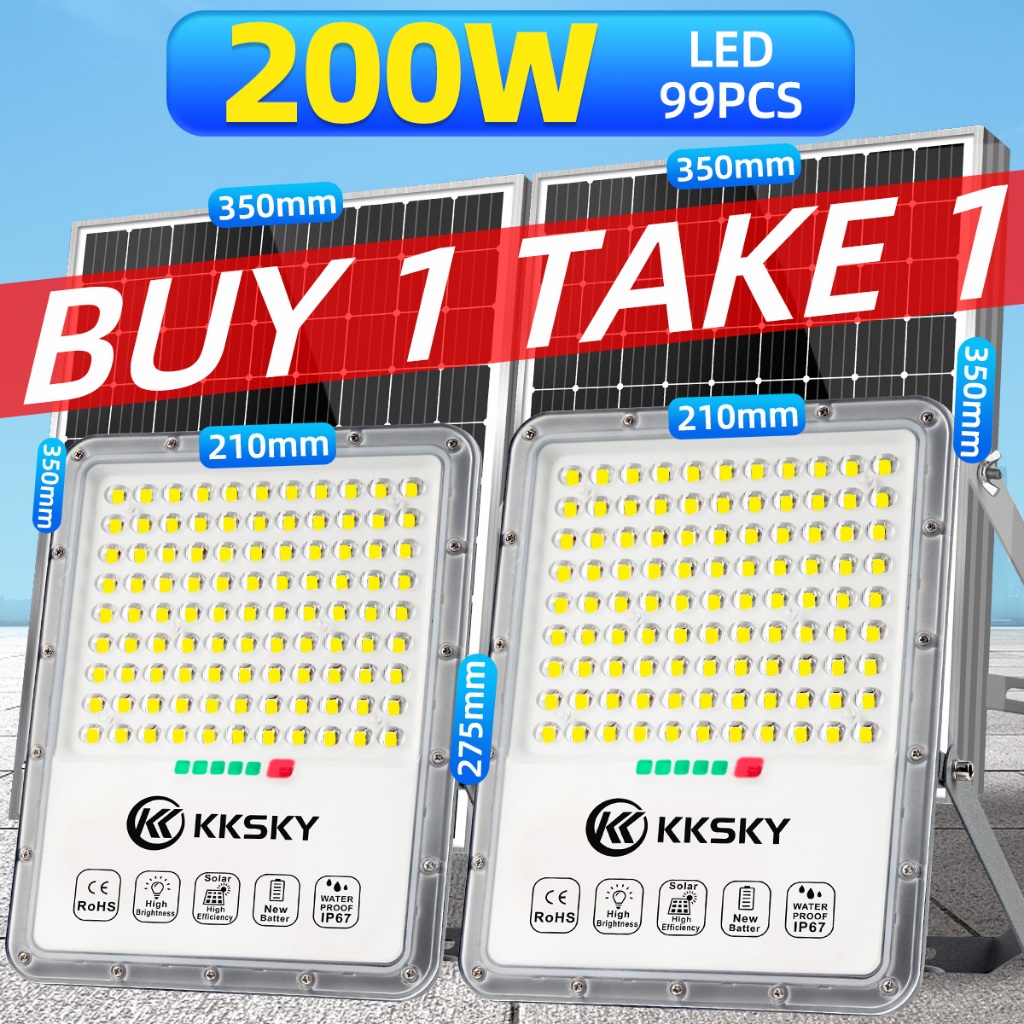 KKSKY Solar Light Buy 1 Take 1 Metal Aluminum Shell Waterproof Outdoor Flood Street Lights 200 watts