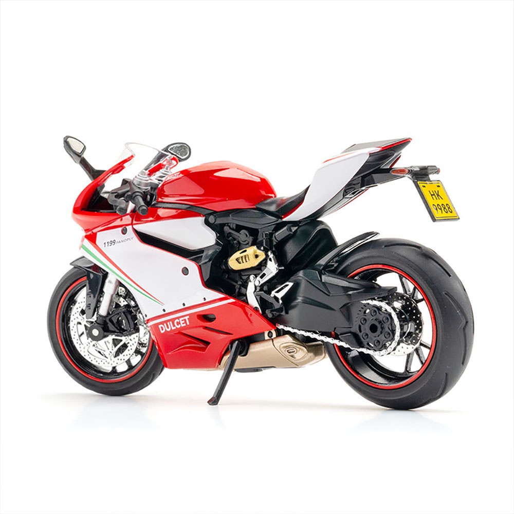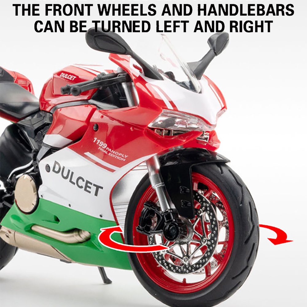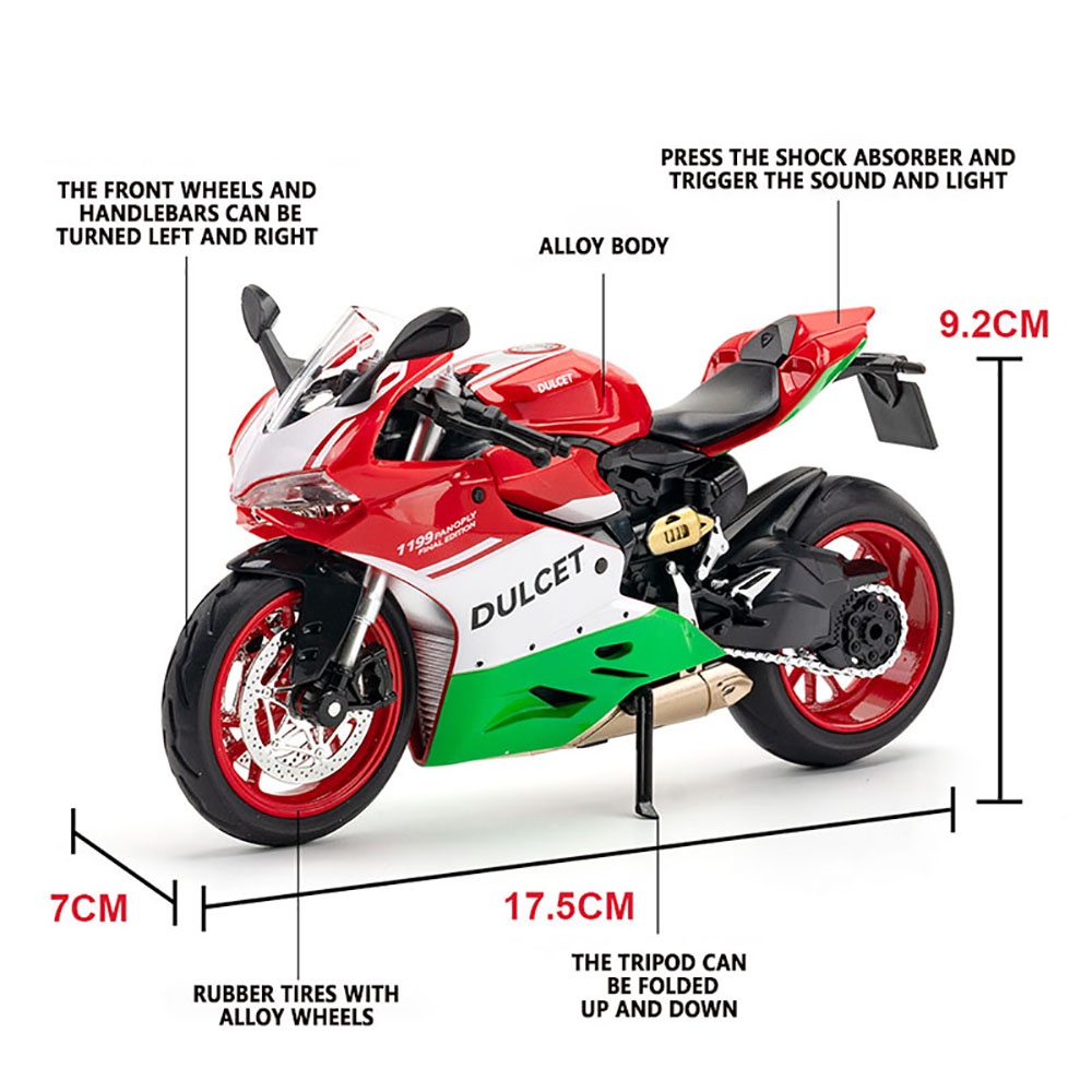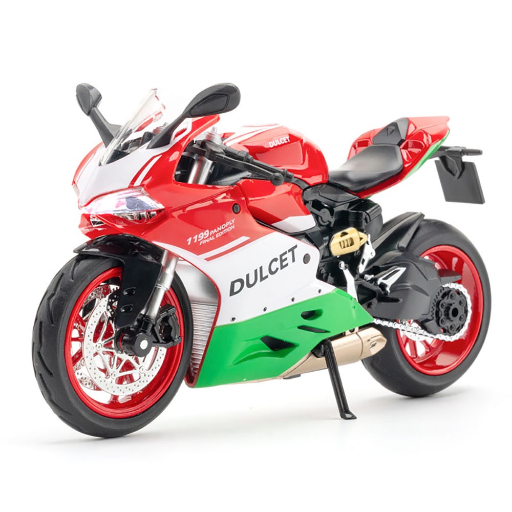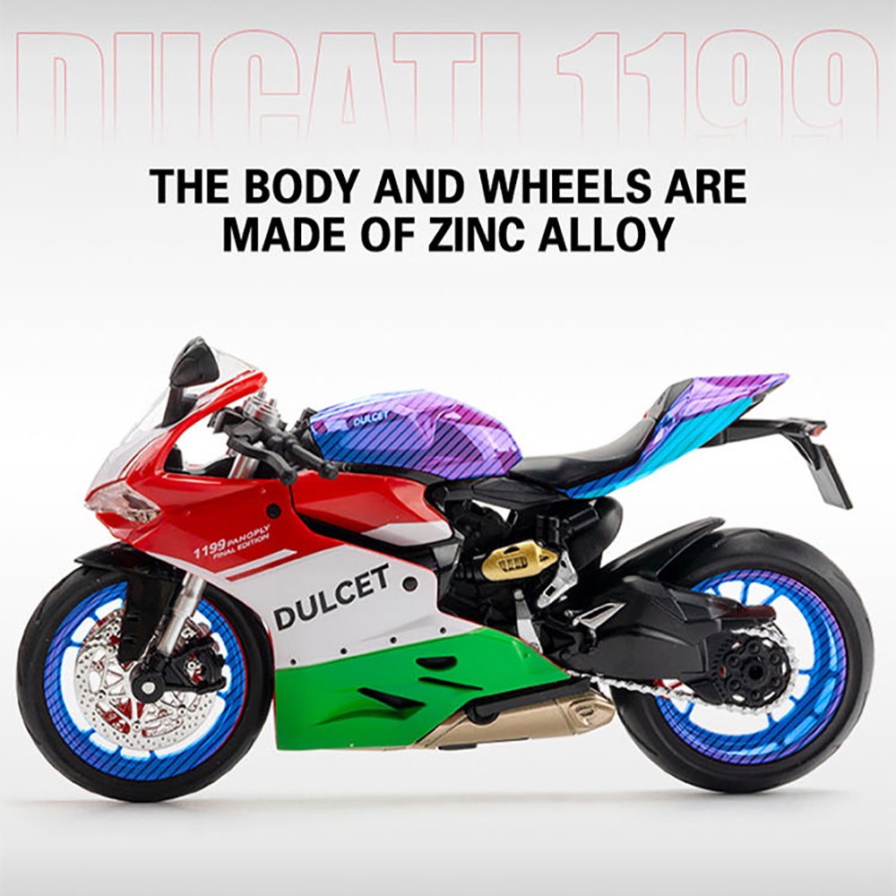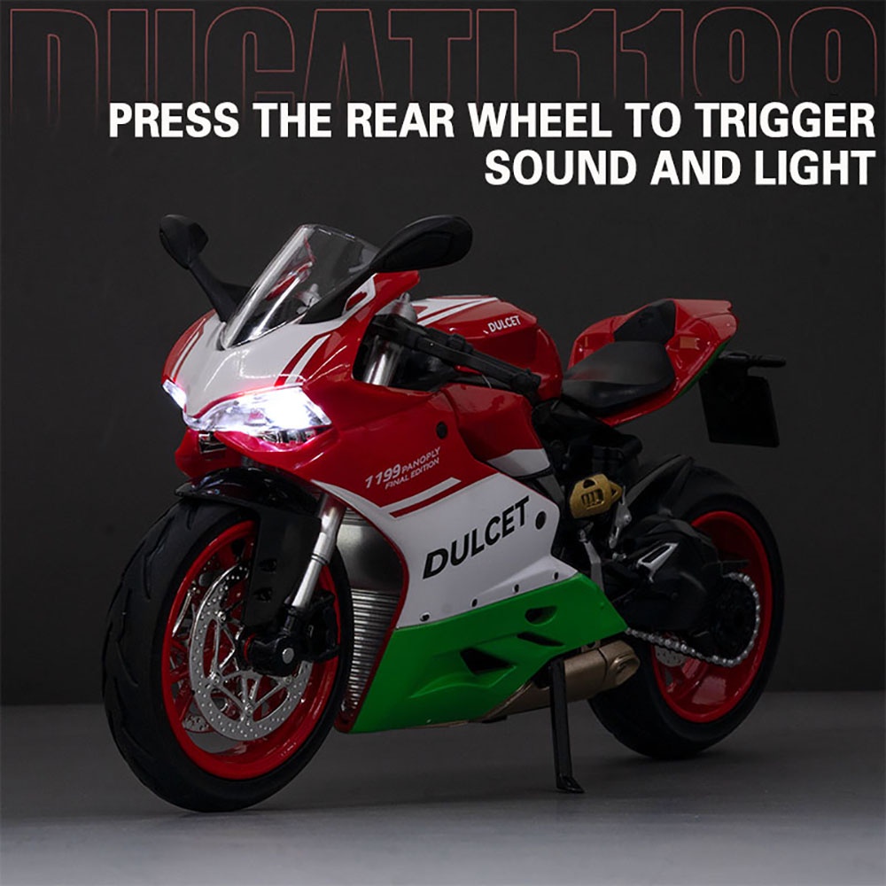 KLT 1:12 Ducati 1199 Panigale S Motorcycle Metal Alloy Toys Car Model Diecast Vehicle For Boys Kids Simulation Sound Light Effect Gift Hobbies Collection