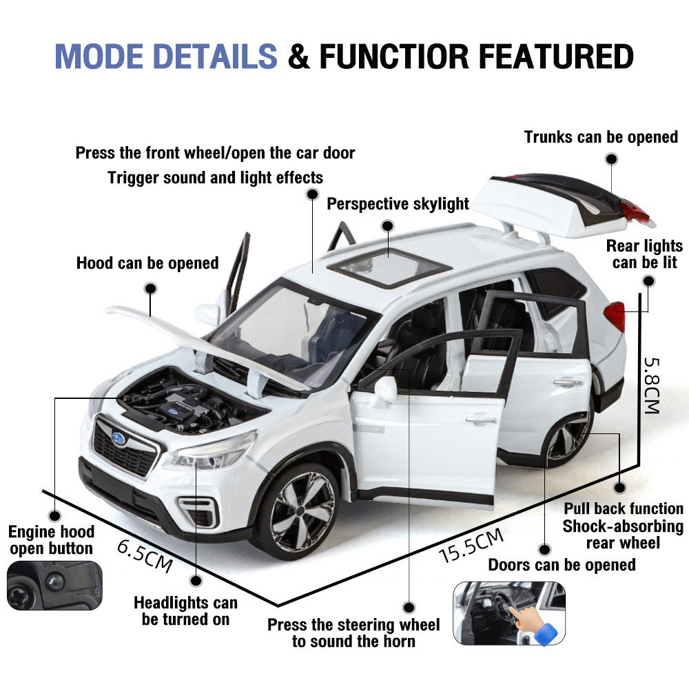KLT 1:30 Subaru Forester Metal Alloy Toys Car Model Diecast Vehicle For Boys Kids Simulation Sound Light Effect Gift Hobbies Collection