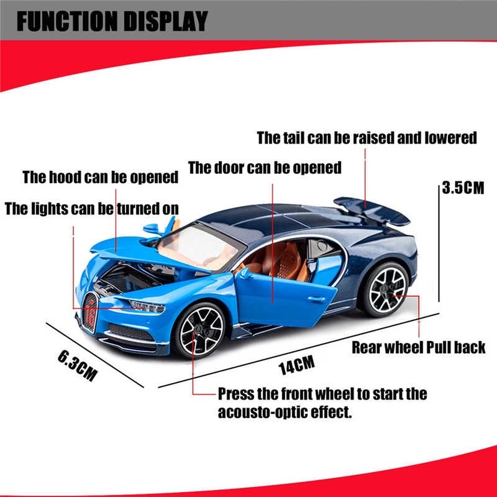 KLT 1:32 Bugatti Chiron Toy Car Model Alloy Diecast Car Toys For Kids Children's Toys Miniauto Truck Vehicle Sound and Light Toy