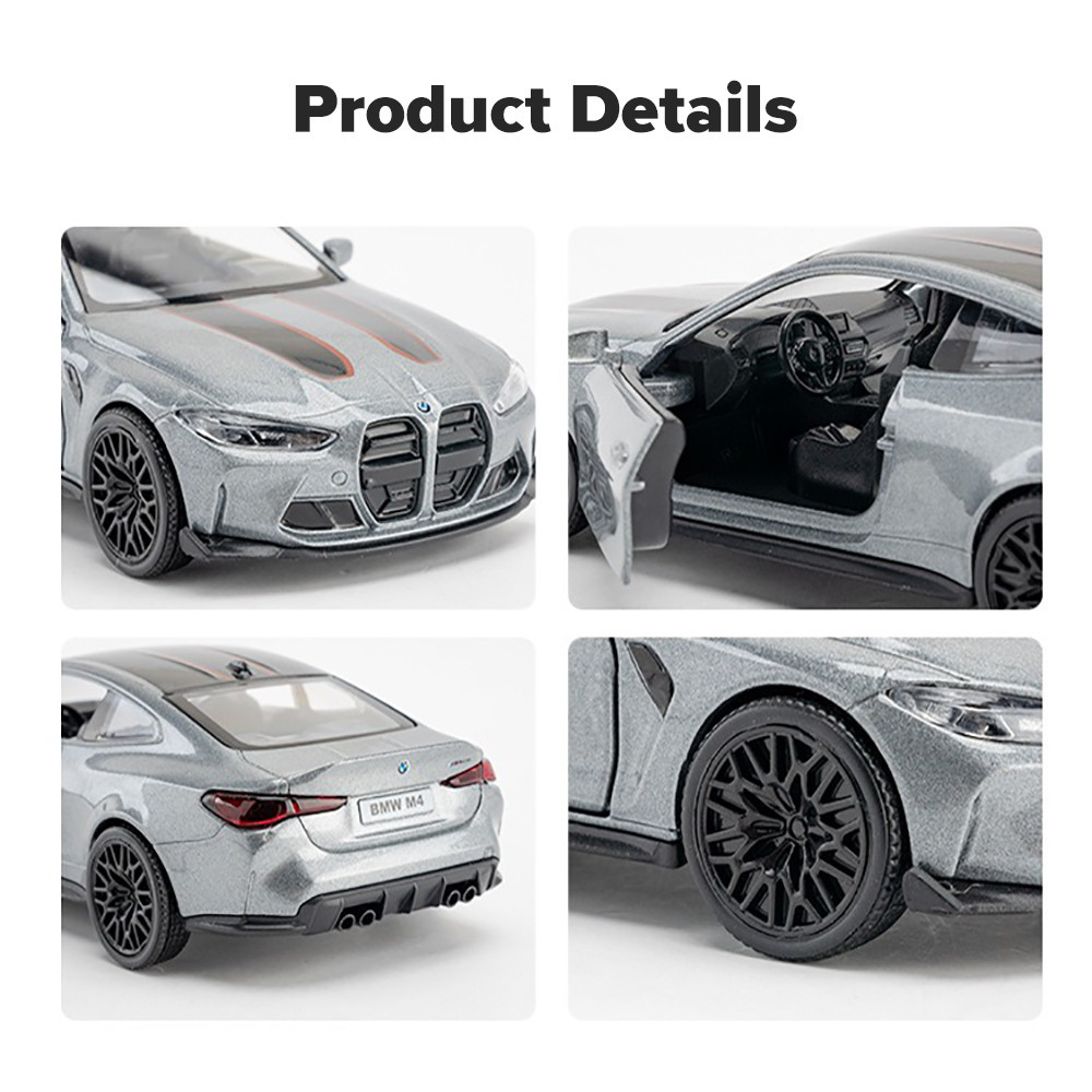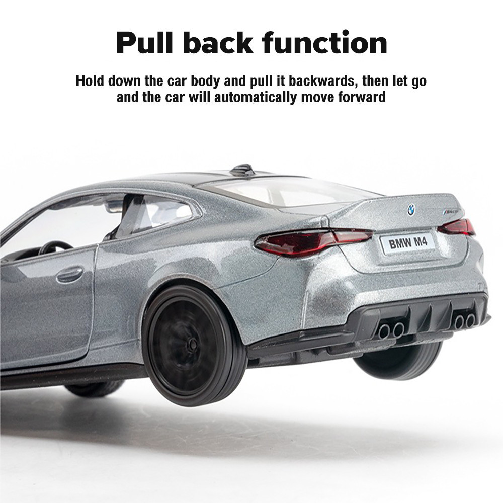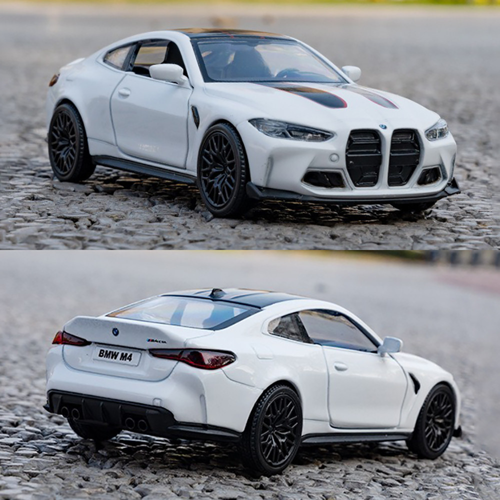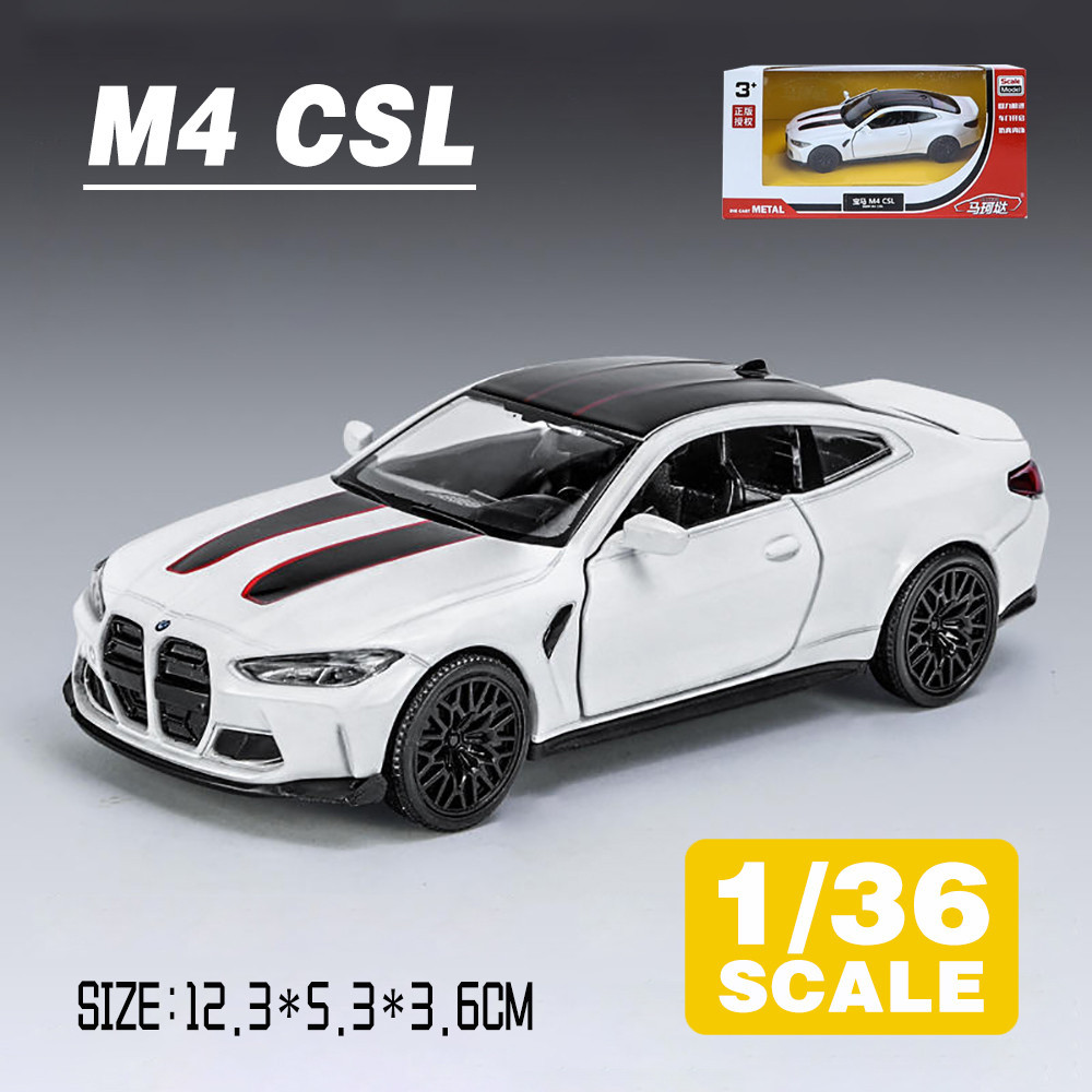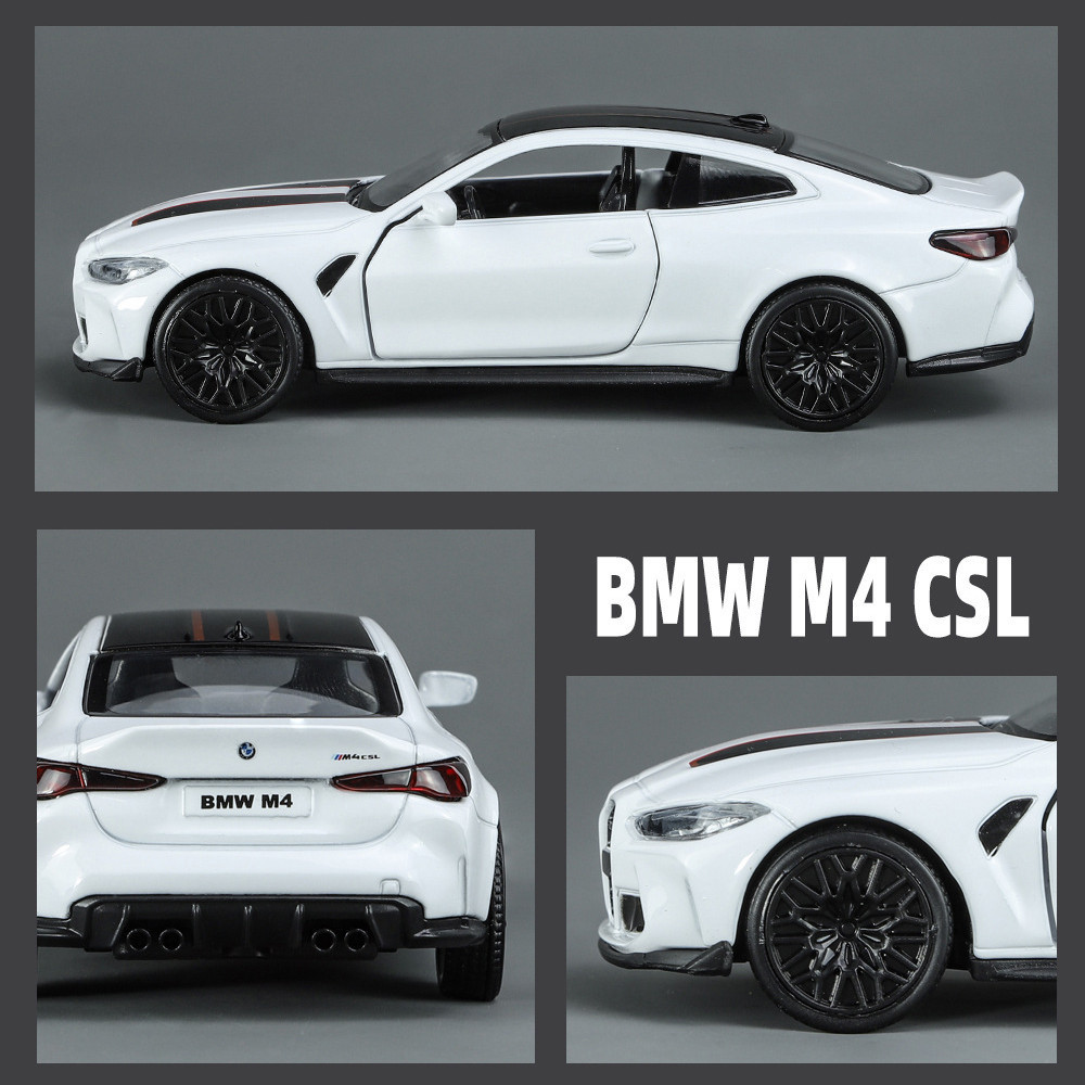 KLT 1:36 BMW M4 CSL Metal Alloy Toys Car Model Diecast Vehicle For Boys Kids Simulation Sound Light Effect Gift Hobbies Collection