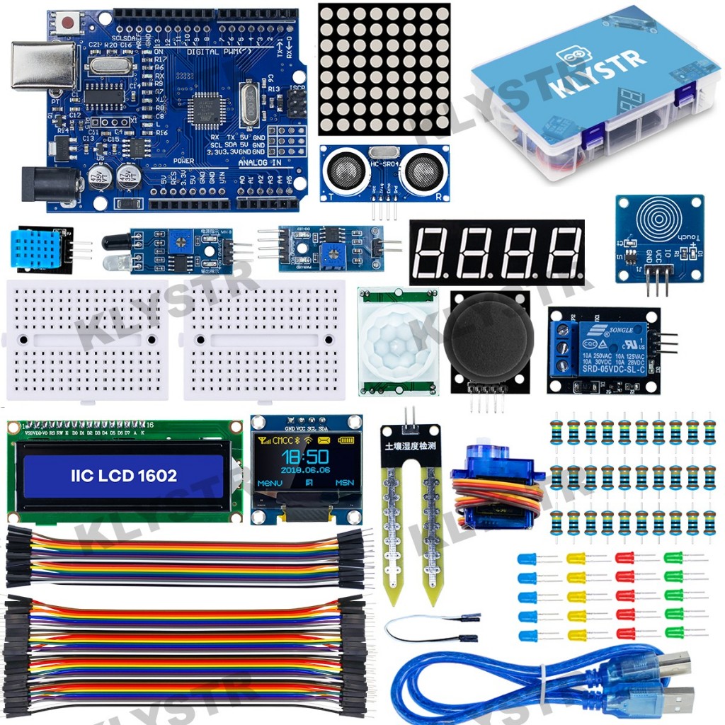 KLYSTR Sensor Module Starter Kit for Arduino Uno Set R3 ,0.96" OLED 1602 LCD Display with Tutorial