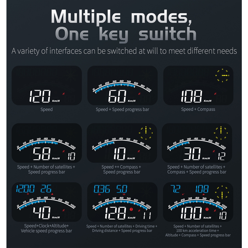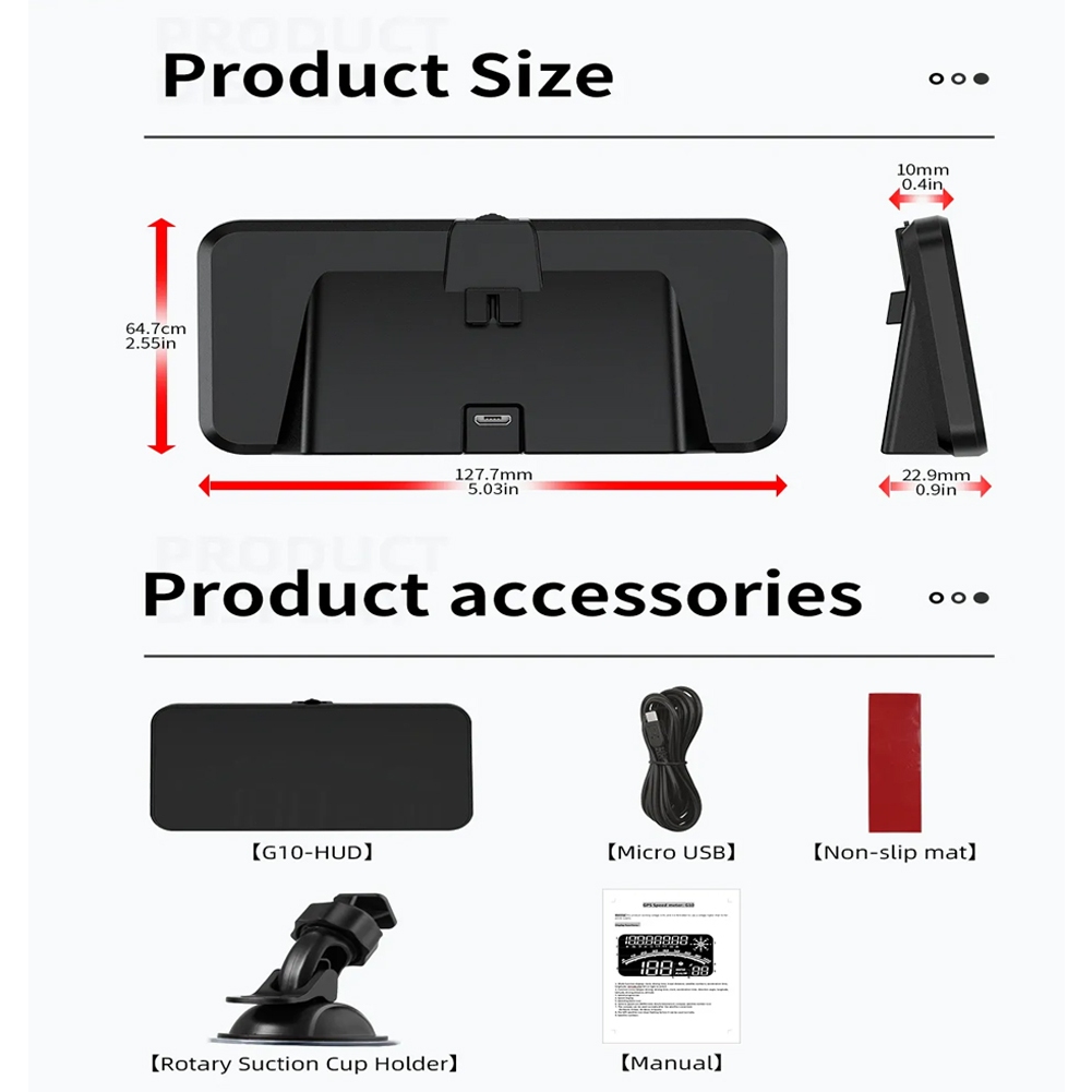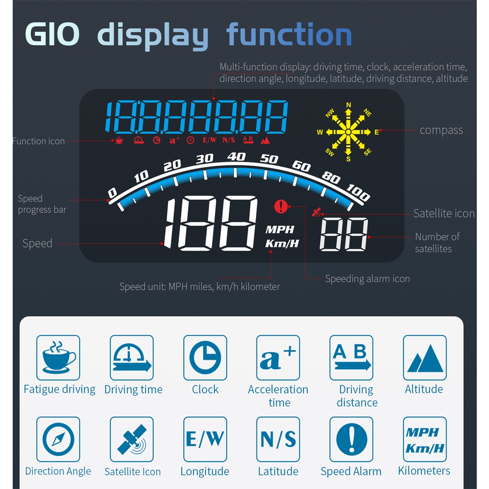 KOMES G10 Digital GPS Speedometer, Car Universal HUD Head Up Display with Speed MPH, Compass Driving Direction, Fatigue Driving Reminder, Overspeed Alarm Trip Meter, for All Vehicl
