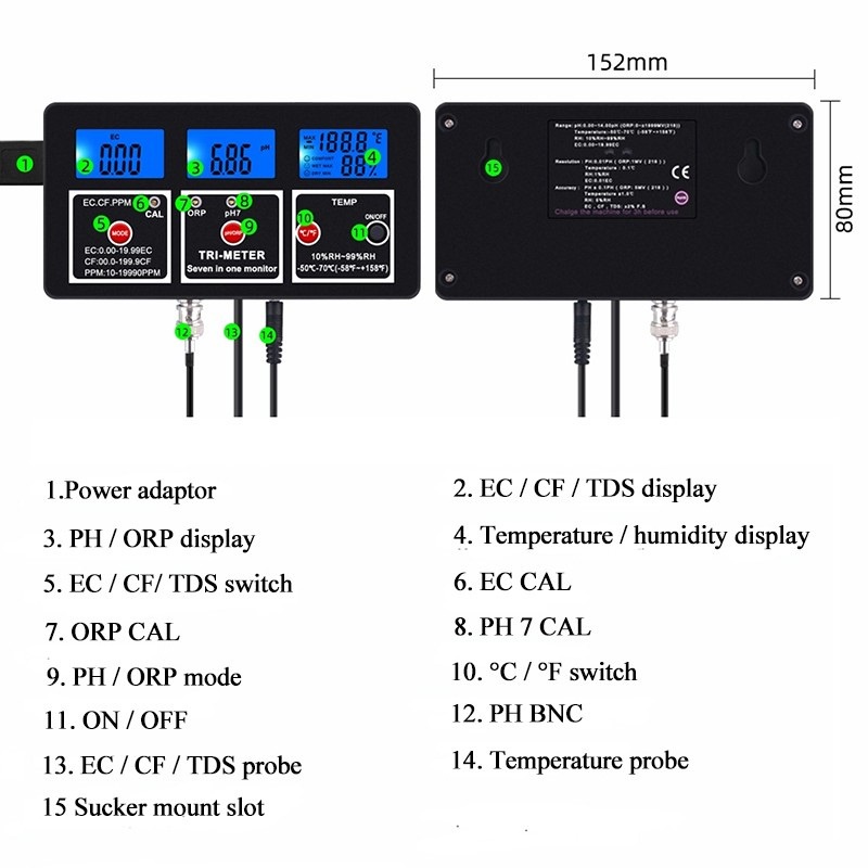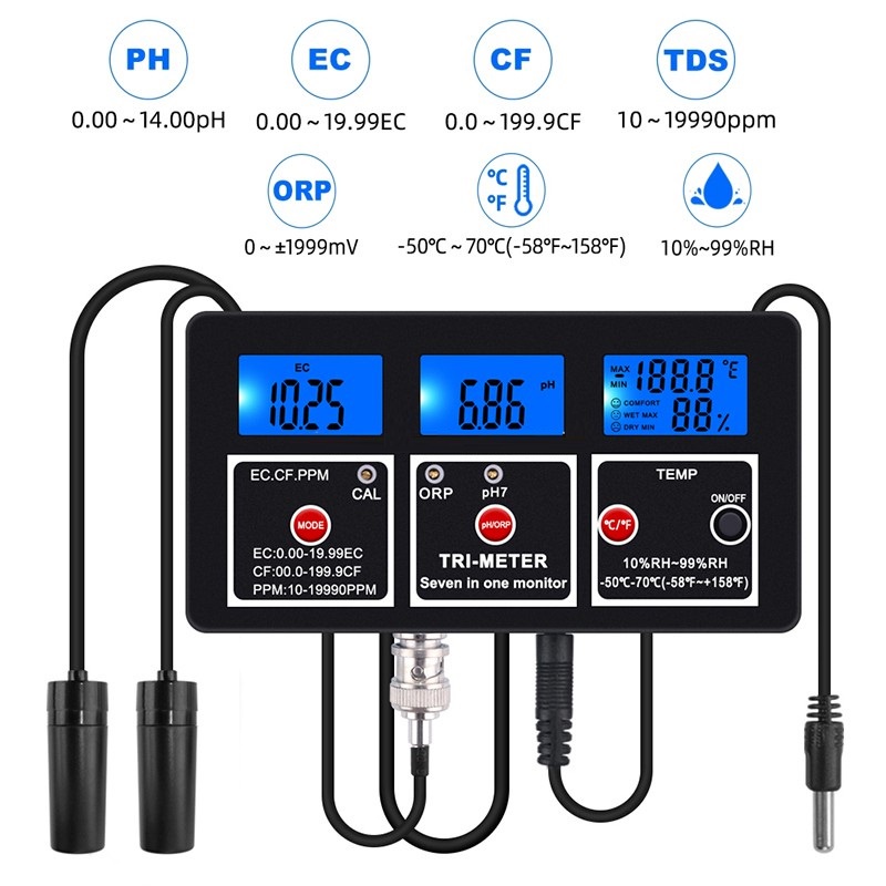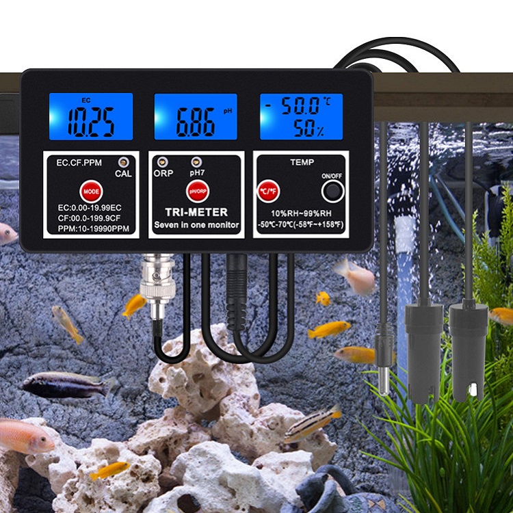 KONG PH Meter For Aquarium Hydroponics 7 In 1 Orp Ph Ec Cf Tds Rh Temp Meter Monitor For Fish Tank