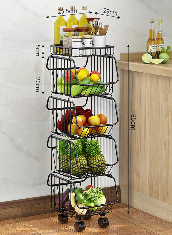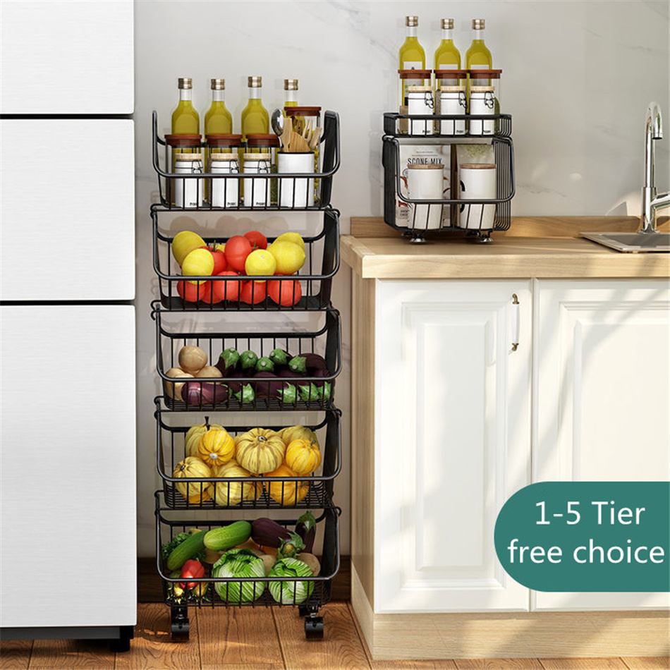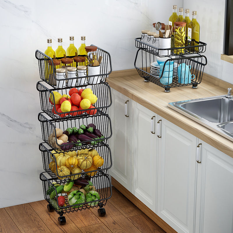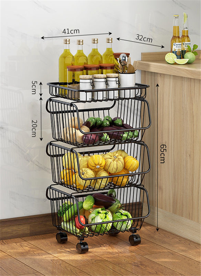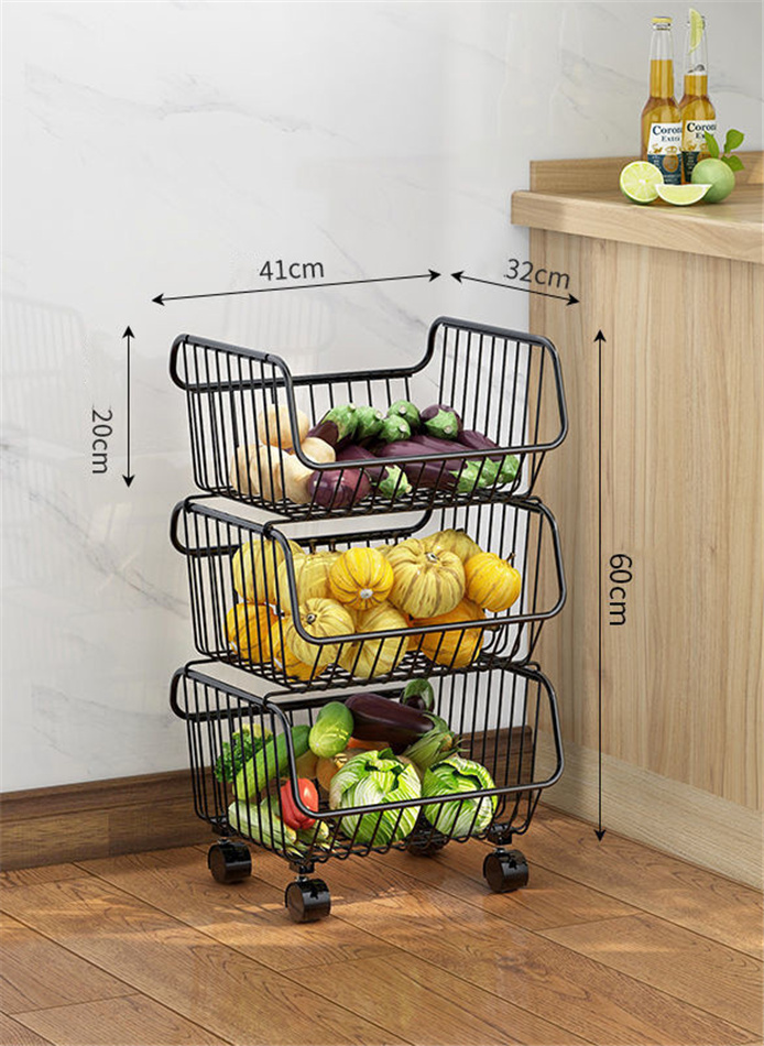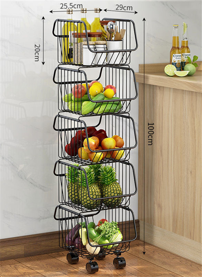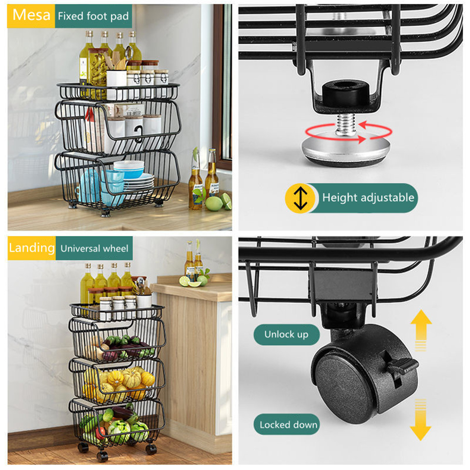 KONG Vegetable Basket Spice Rack Layered Kitchen Organizer Trolley Rack Stackable Vegetable Rack Stainless Steel
