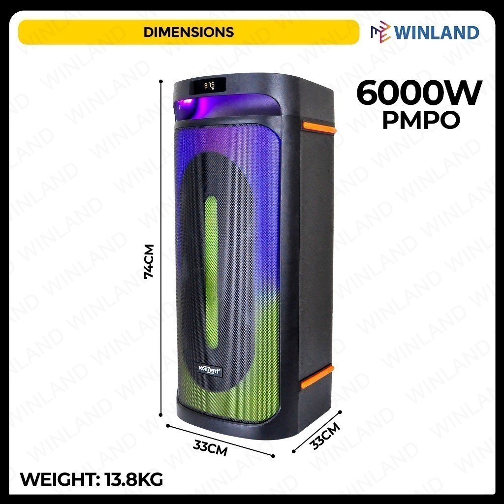 Konzert AURORA 8 2 x 8" Party Speaker System with Bluetooth+TWS, USB/microSD, Aux-in & FM Radio-6000