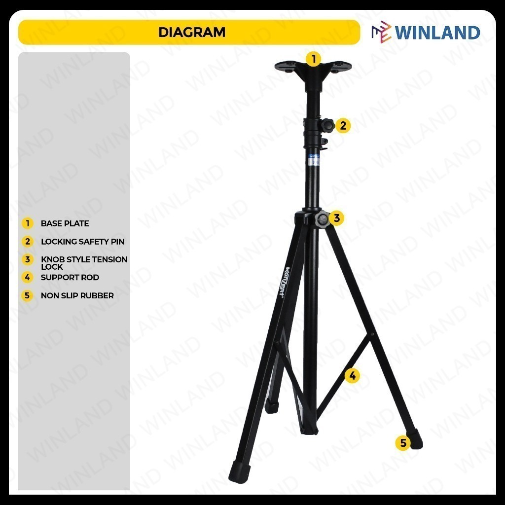 Konzert by Winland Universal Speaker Stand 4.7ft w/ Base Plate SS5 (15Kg Max Capacity)