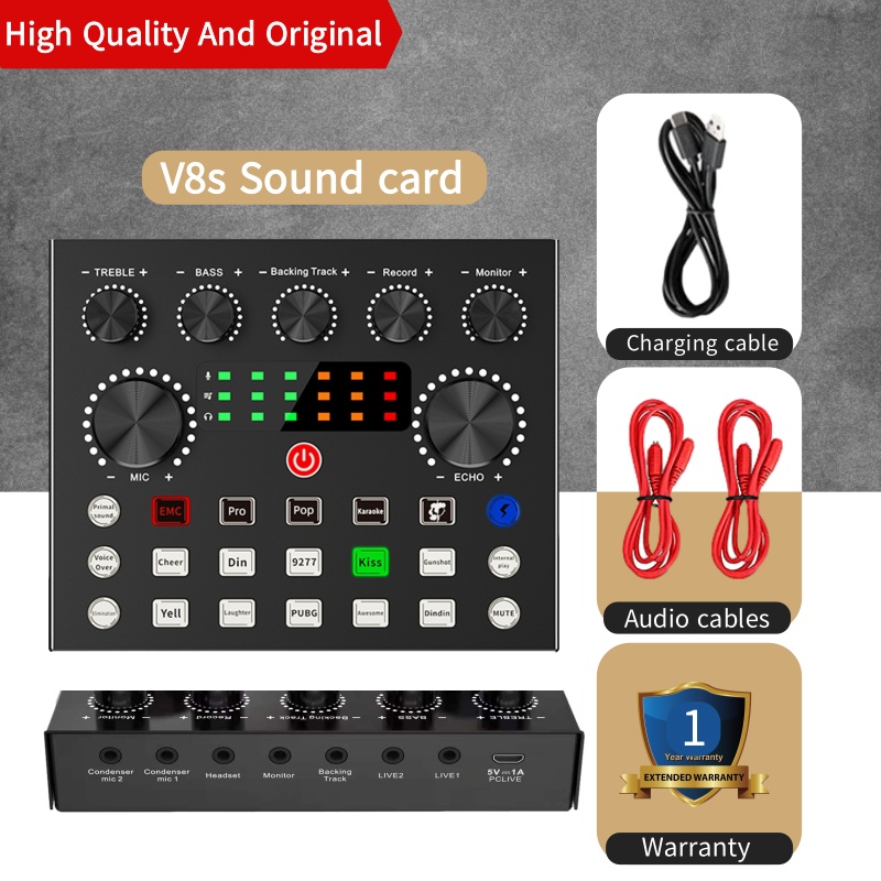 KOORFLY V8S Sound Card Bluetooth Studio Mixer Singing Recording Live YouTube Broadcast For Phon