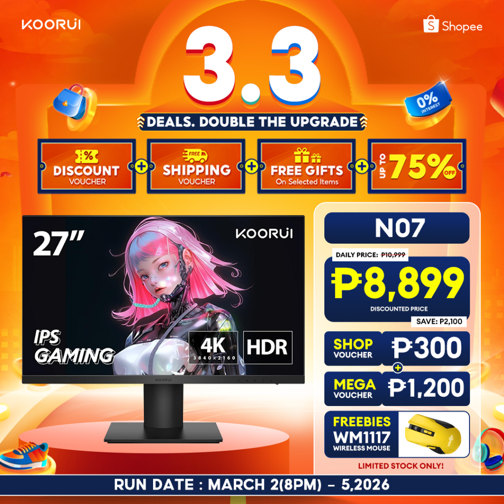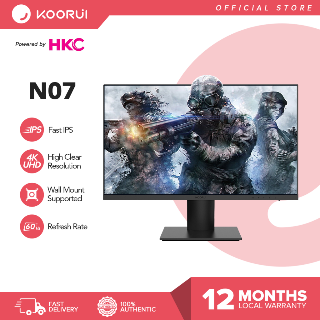 KOORUI N07 (Powered by HKC) 4K 27" 3840 X 2160 UHD, IPS with VESA, HDR10, 90% DCI-P3 Gaming Monitor