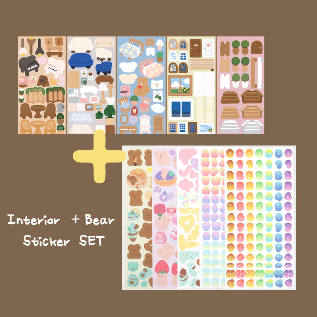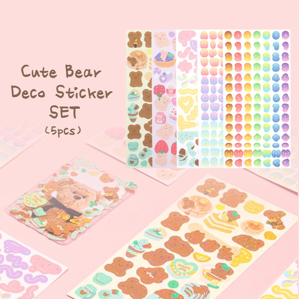 KOREA DAISO Cute Stickers Deco Sticker Sheet Planner Sticker Set Bear Series Stickers Korean Stickers Decoration Stickers Diary Stickers