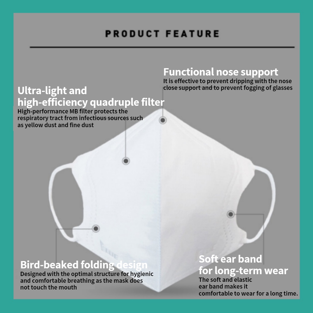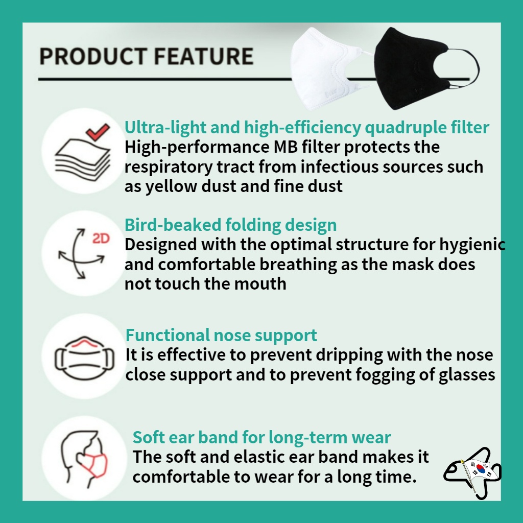 KOREAN KF 94 MASK/Easy to breathe KF94 bird beak mask/BLUE BON MASK/4 Ply 2D Face Mask /Large Small Size / Black White Color /Individual packaging/Made in KOREA MASK