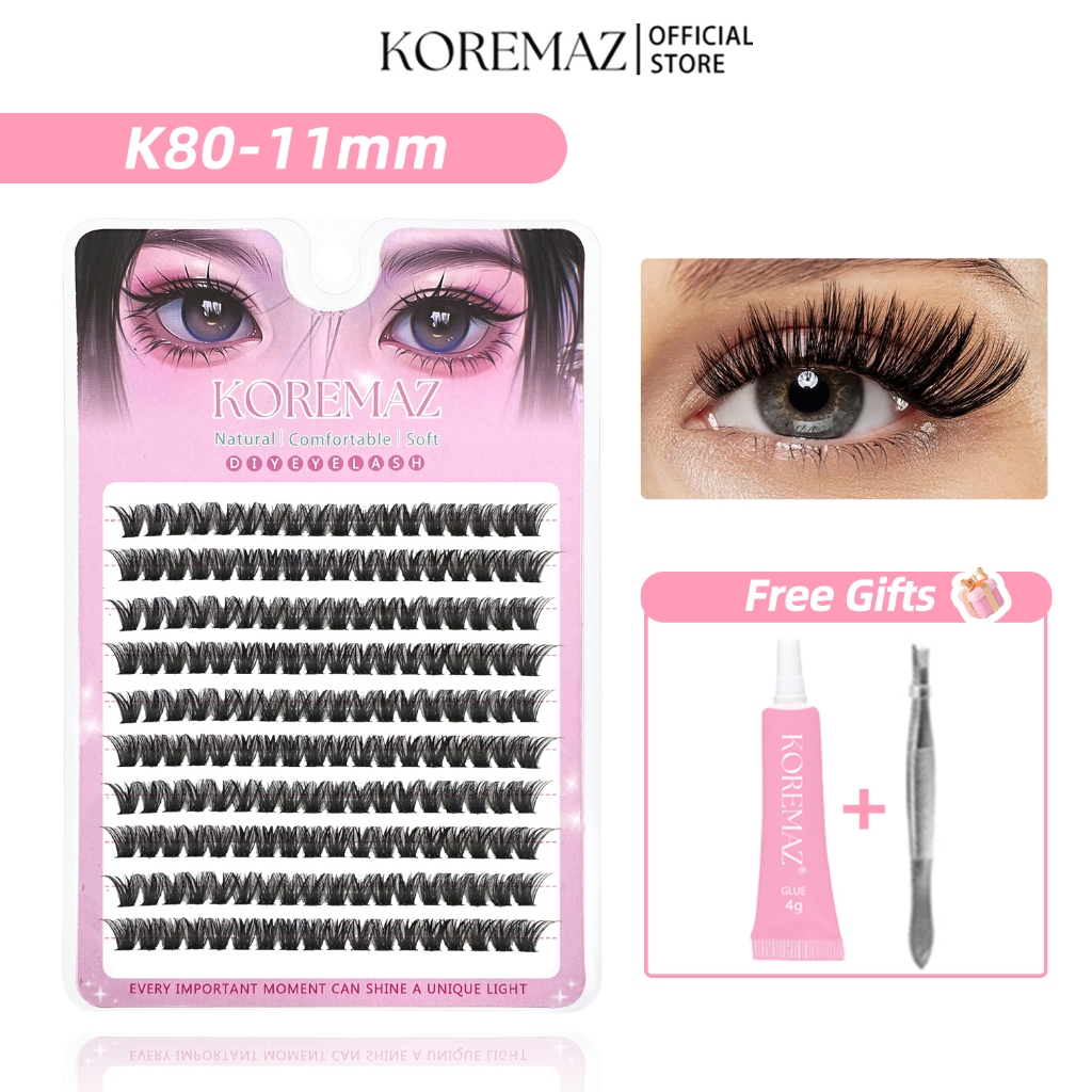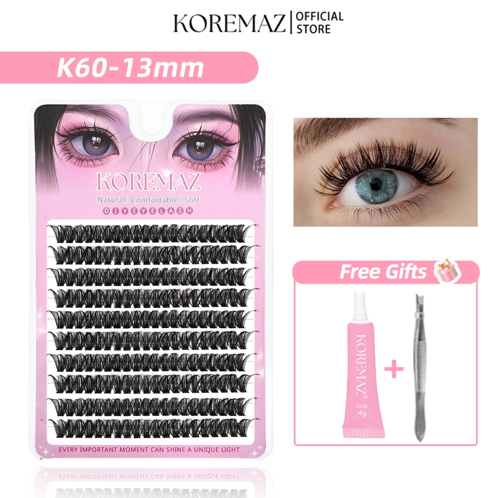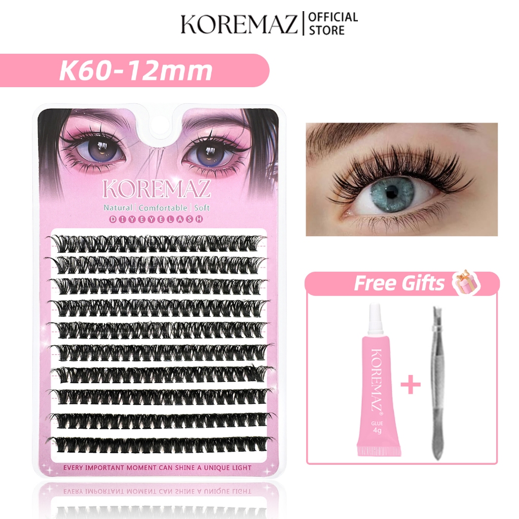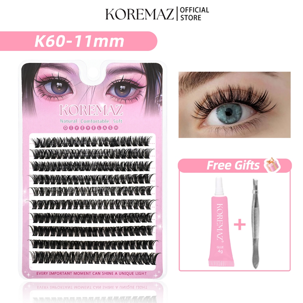 KOREMAZ 60 Clusters Lashes D Curl Volume Individual Lashes Extensions 30D/40D Wispy Lashes Cluster DIY At Home ( D-9-16 Mix )