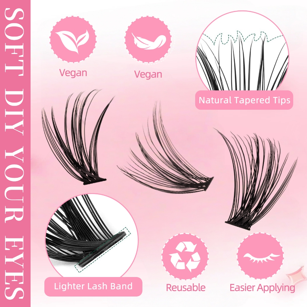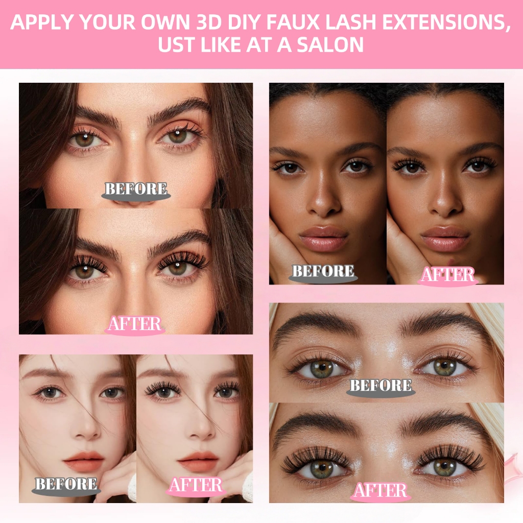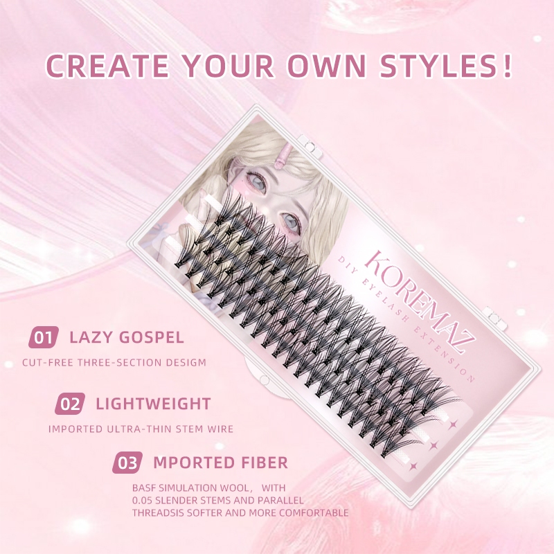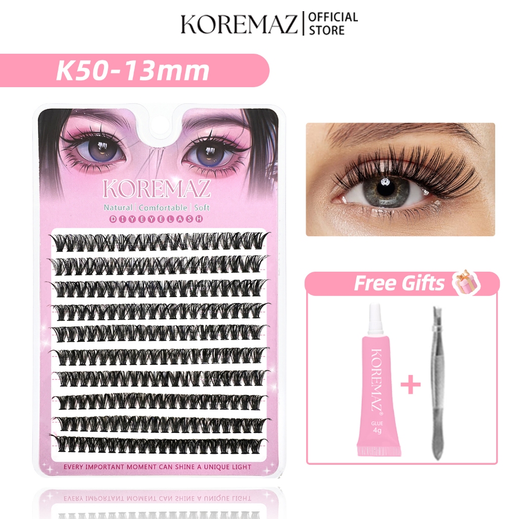 KOREMAZ 60 Clusters Lashes D Curl Volume Individual Lashes Extensions 30D/40D Wispy Lashes Cluster DIY At Home ( D-9-16 Mix )