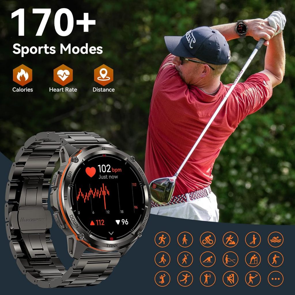 KOSPET TANK T3 Ultra Military Men's smartwatch with GPS, 60-day battery standby, 170+ sport mode