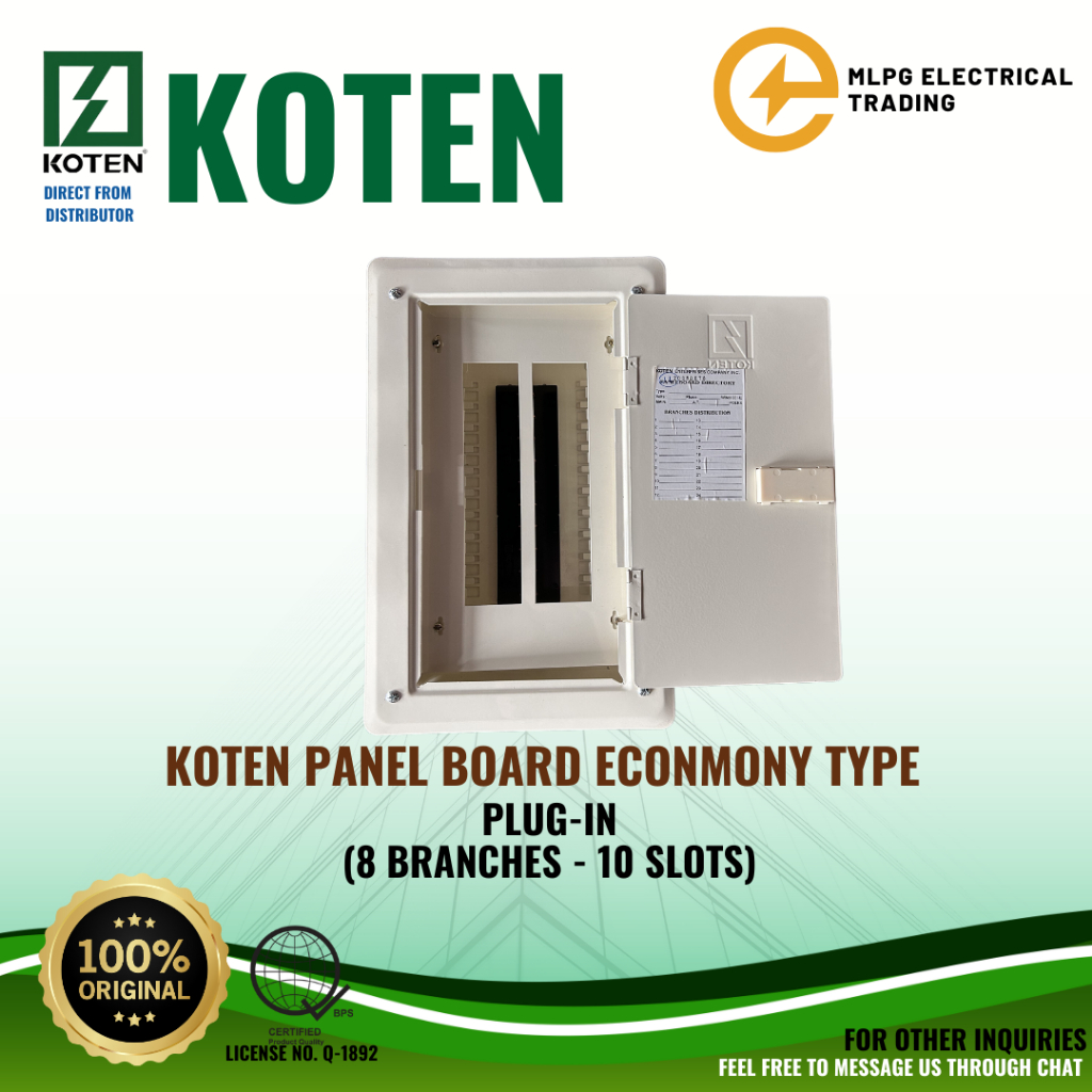 KOTEN Panel Board ECONOMY TYPE for PLUG-IN (2 Pole) (2, 4, 6, 8, 10, 12, 14, 16 Branches)