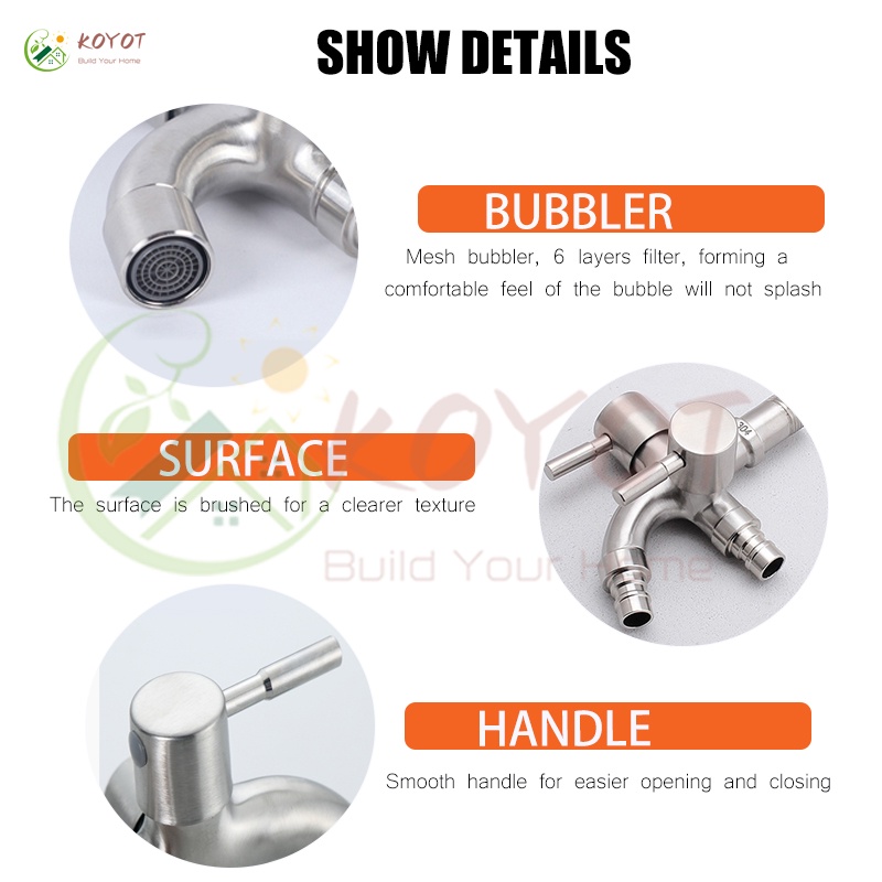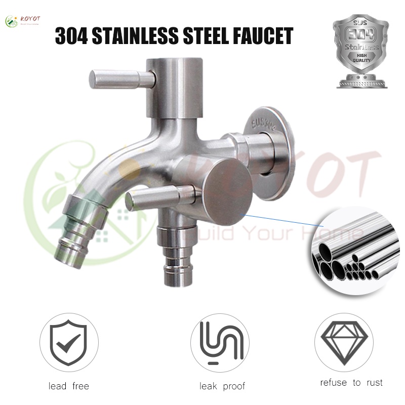 KOYOT 304 Stainless Steel 1 in 2 out Head Two Way Water Washer Tap Faucet Wash Machine Faucet