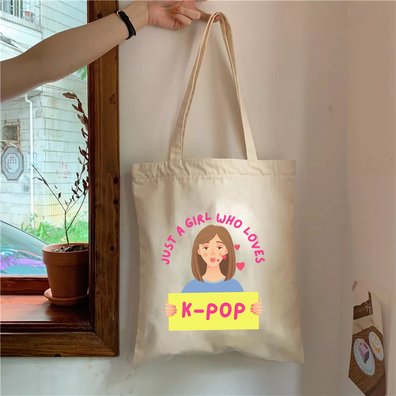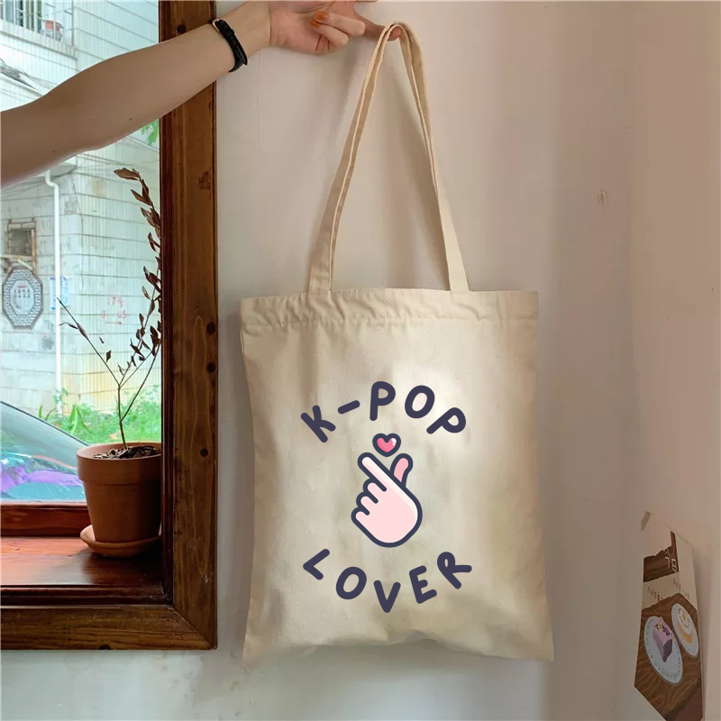 KPOP K-POP I LOVE KPOP KOREAN DESIGN SOUVENIRS TOTE BAG KATSA CANVAS GIFT IDEAS PASALUBONG