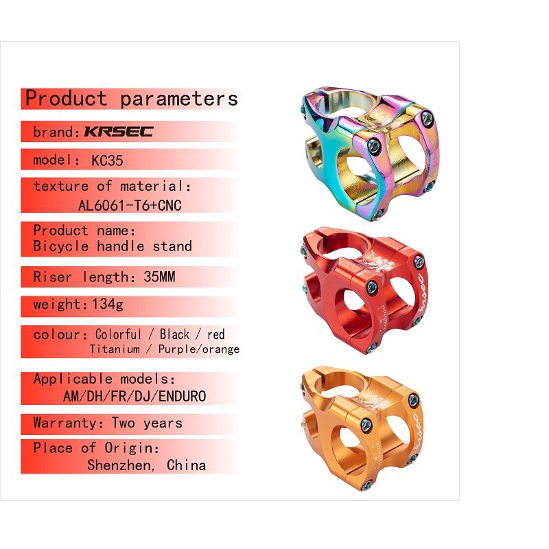 KRSEC Bike Mtb handlebar stem 35mm aluminum handlebar stem Mountain bike High Strength CNC DH/FR/AM/DJ bicycle parts