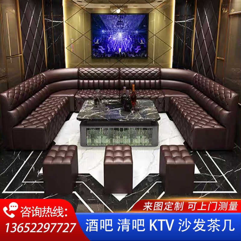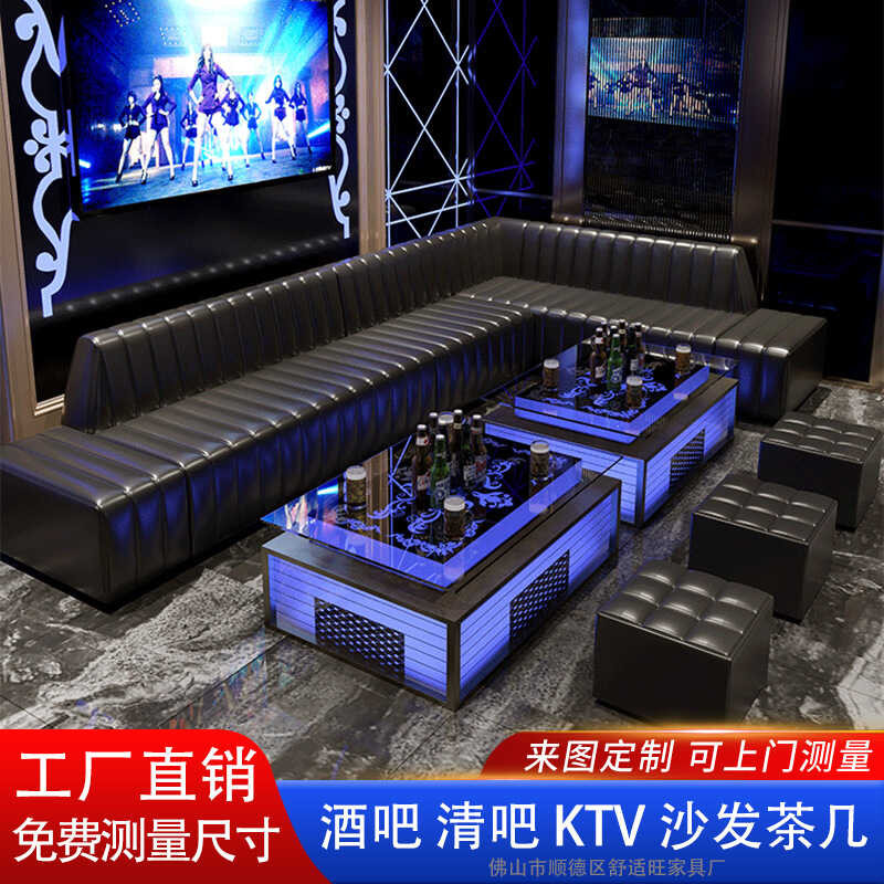 KTV Light Luxury Style Genuine Leather Coffee Table Set Clear Nightclub Private Room Bar Sofa Booth