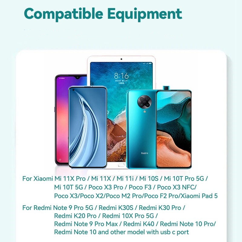 KUKE 33w Fast Turbo Phone Charger Fast Charging 6A Type C Cable For Xiaomi Poco X3 NFC Pro poco f3