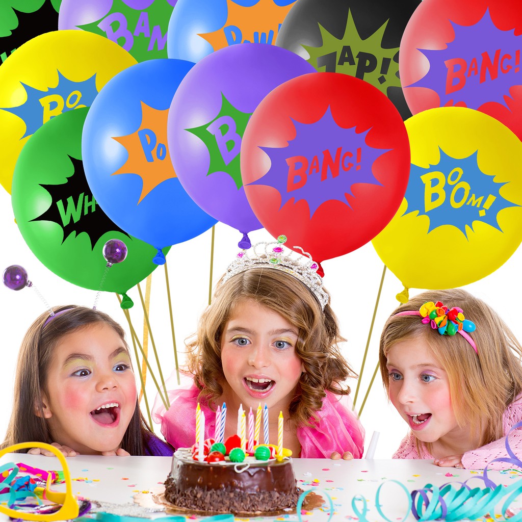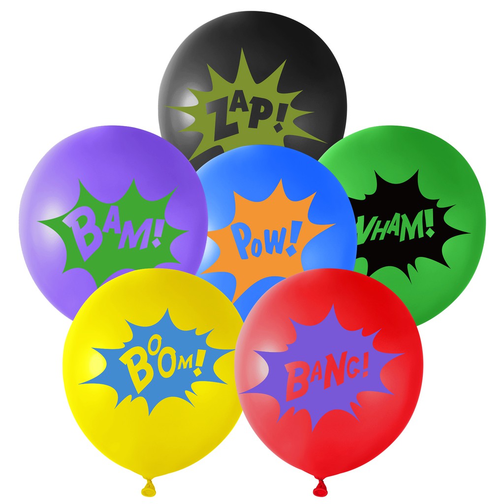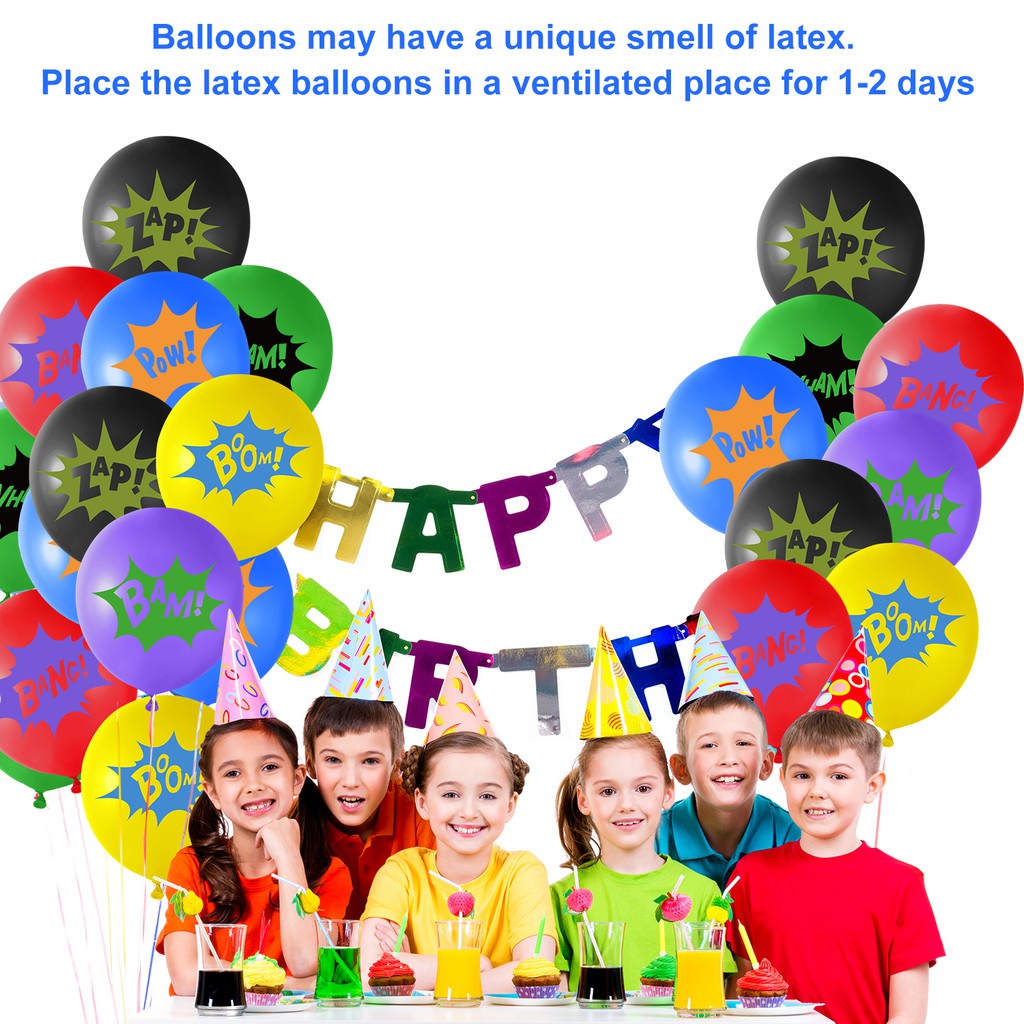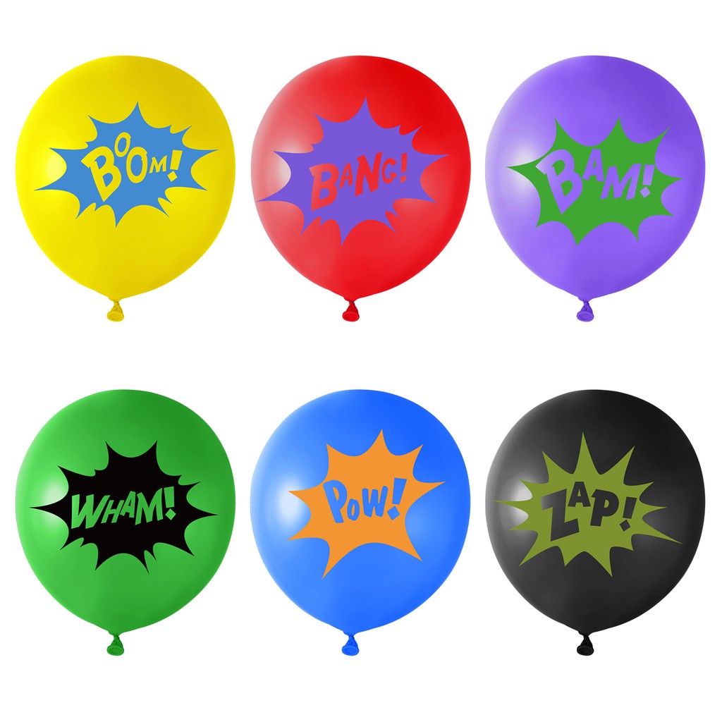 KUUQA18PCS Superhero Balloons Children's Party Balloons Multicolor Superhero Latex Balloons Comic Slogans Balloons(6 Color)