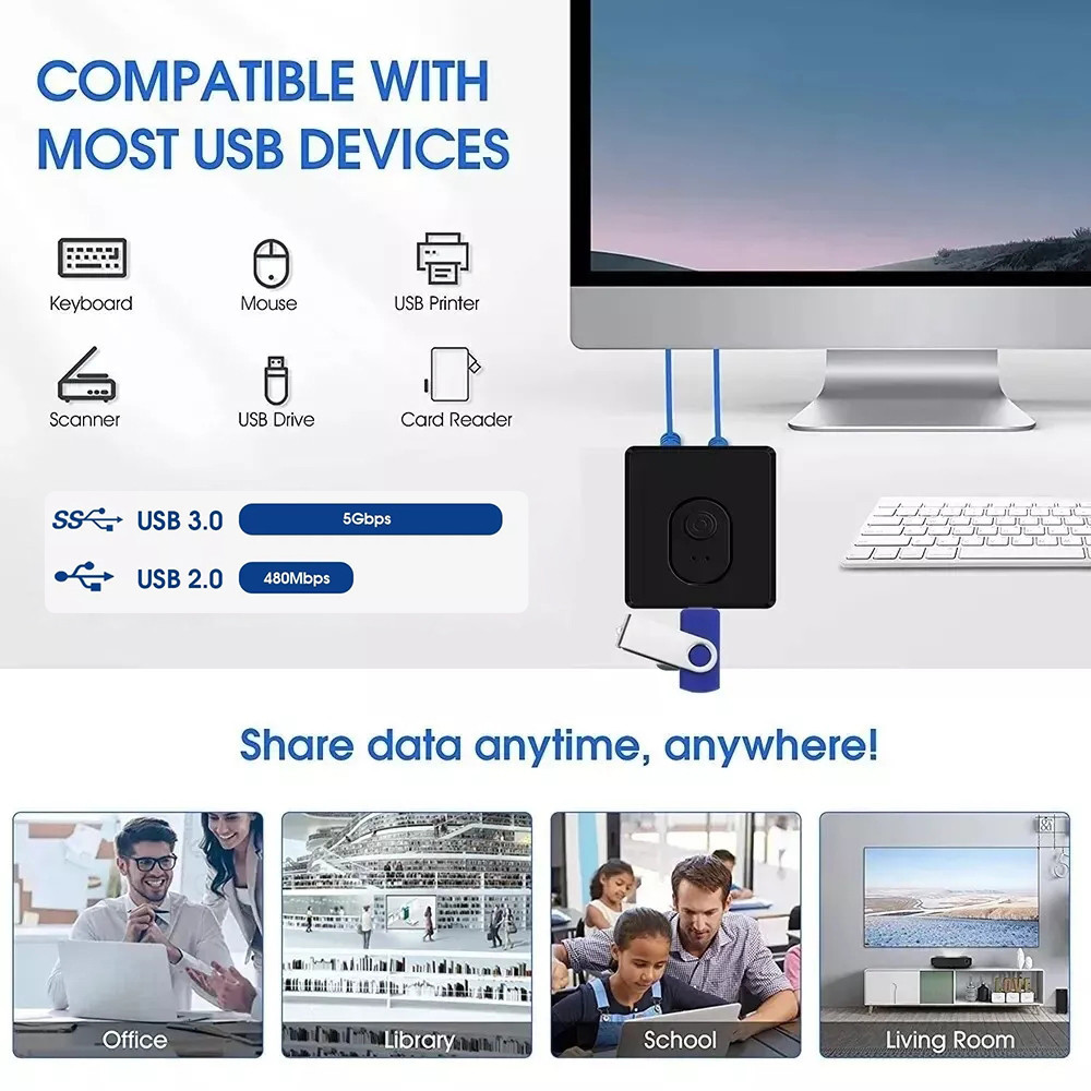 KVM Switch USB 3.0 Hub 1x2/2x1 Switch USB Splitter USB 3.0 Laptop Printer Keyboard Mouse Shared Controller