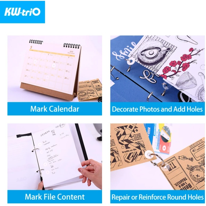 KW-TRIO Hole Punch Protector Loose-Leaf Paper Hole Reinforcement Labels Round Stickers Self-Adhesive