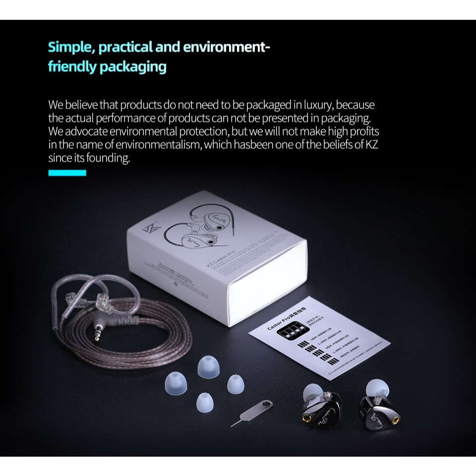 KZ Castor Pro In-Ear Wired Earphones With Dual 10 mm Dynamic Drivers Adjustable Custom HIFI Sound Quility Gaming Earbuds