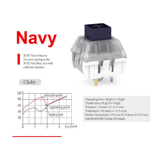 Kailh Box Navy Jade Switch Clicky Mechanical Keyboard Switch for IP56 Water-Proof 3 Pin RGB SMD Compatible Cherry MX Switches