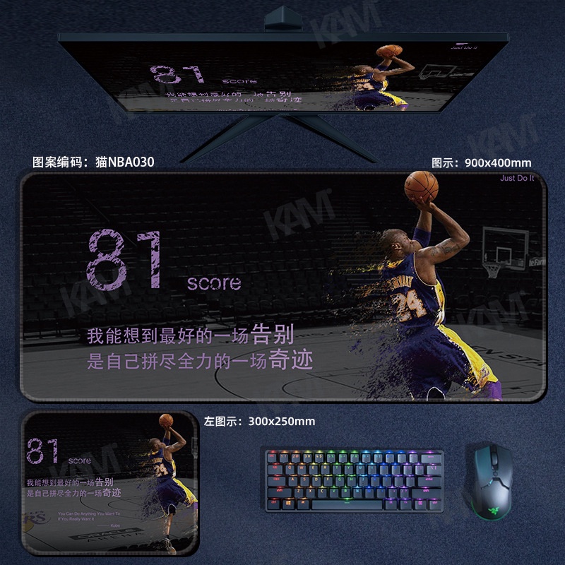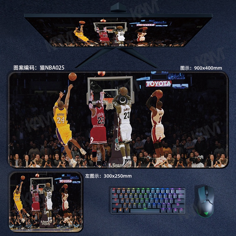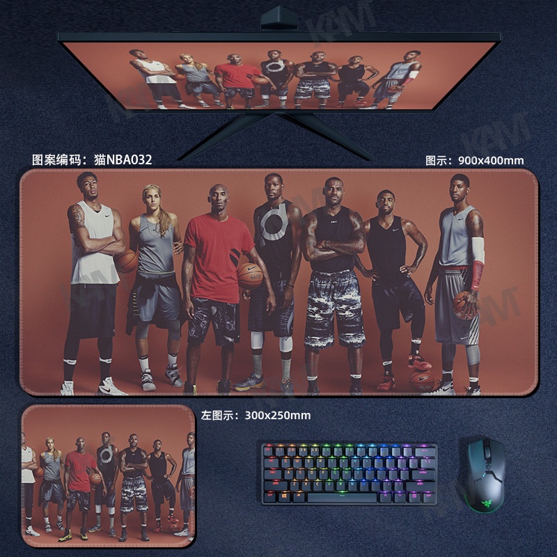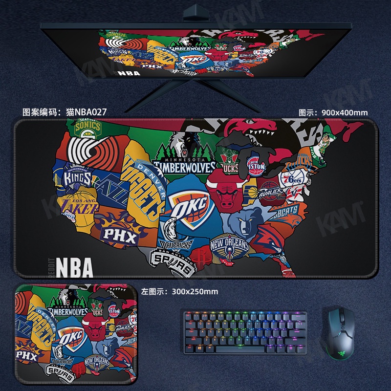 Kam NBA Thick Large Gaming Mouse Pad 800mmx300mm Desk Pad Waterproof Computer Mouse Pad HD Printing Office Keyboard Mouse Pad Room Decoration
