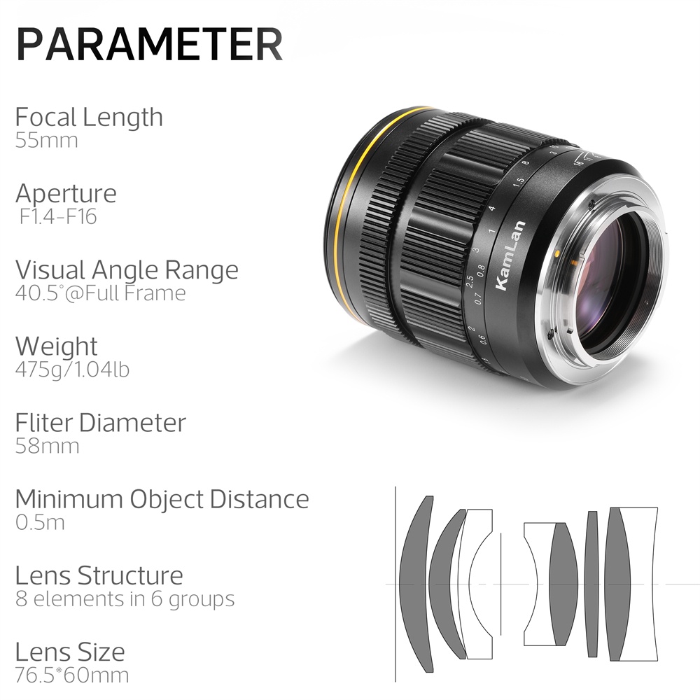 Kamlan 55mm f1.4 Full-Frame Manual Focus Lens for Sony E/ Nikon Z/ Canon R Mount Mirrorless Cameras