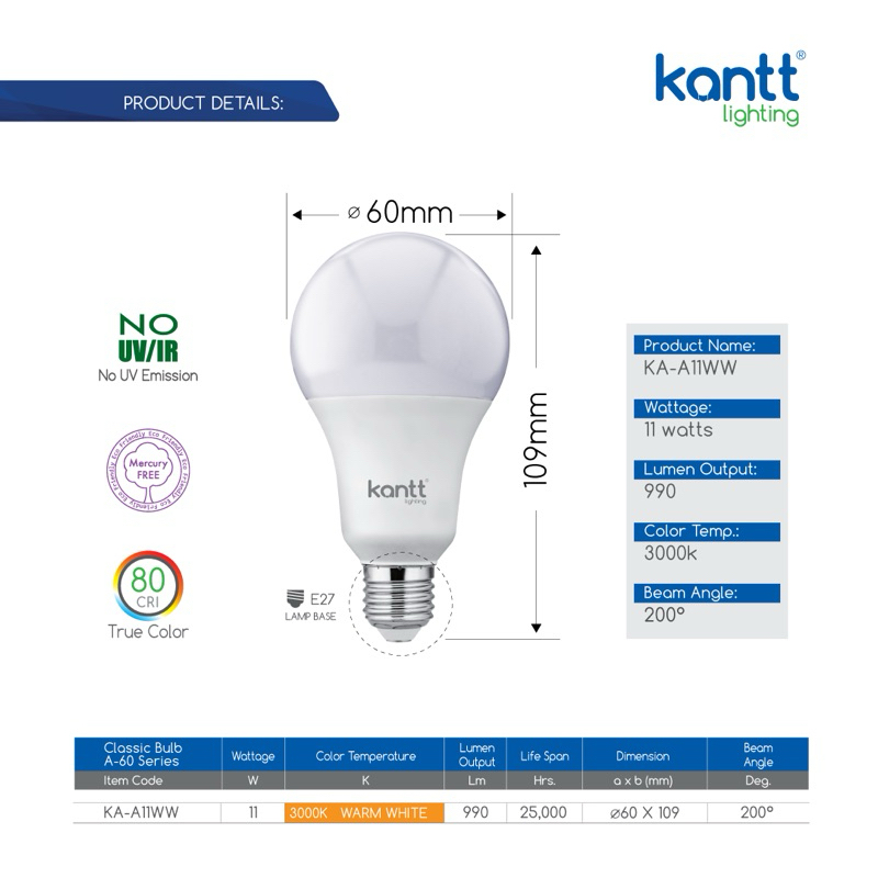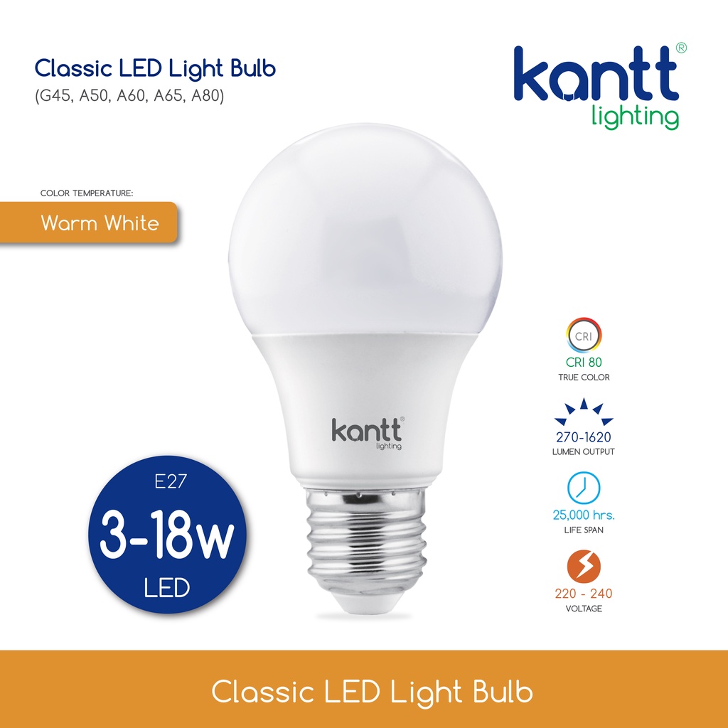 Kantt Lighting Warm White Classic LED Light Bulb - 3W / 4W / 5W / 7W / 9W / 11W / 13W / 15W / 18W