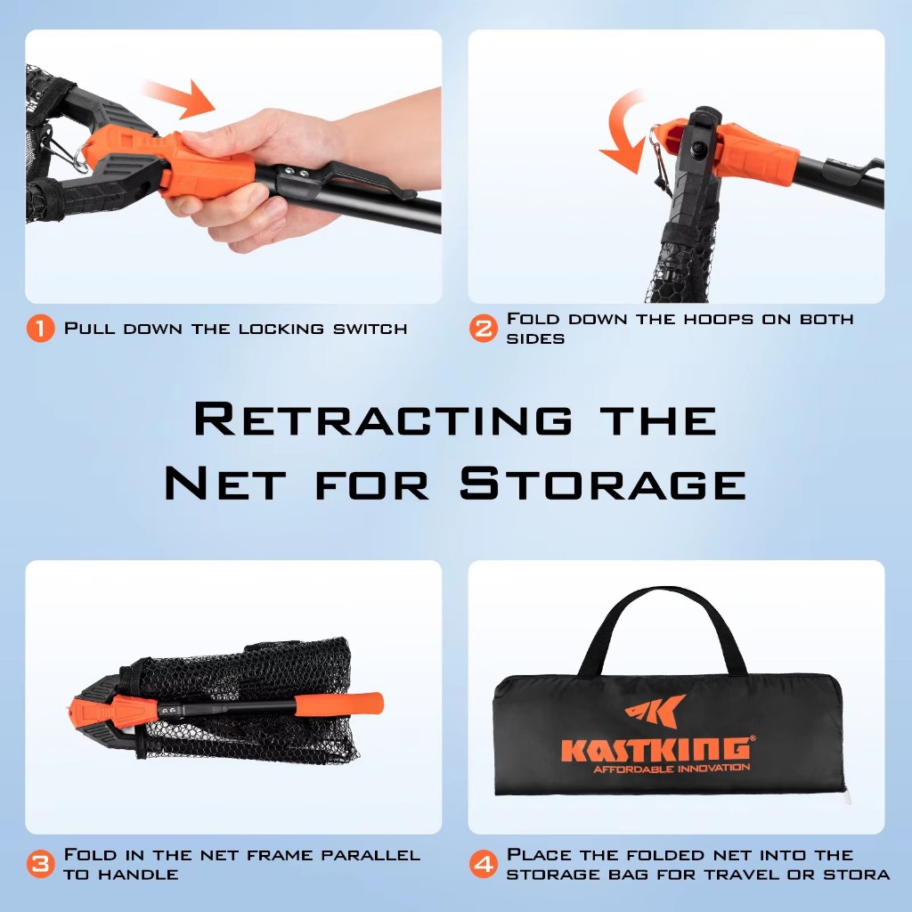 KastKing Pontus Fishing Net, Foldable Extendable Fish Landing Net Lightweight & Portable Fishing Net with Soft EVA Foam Handle