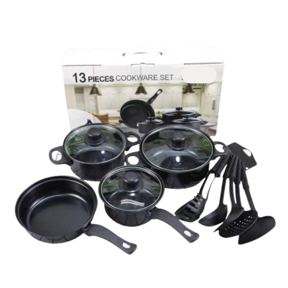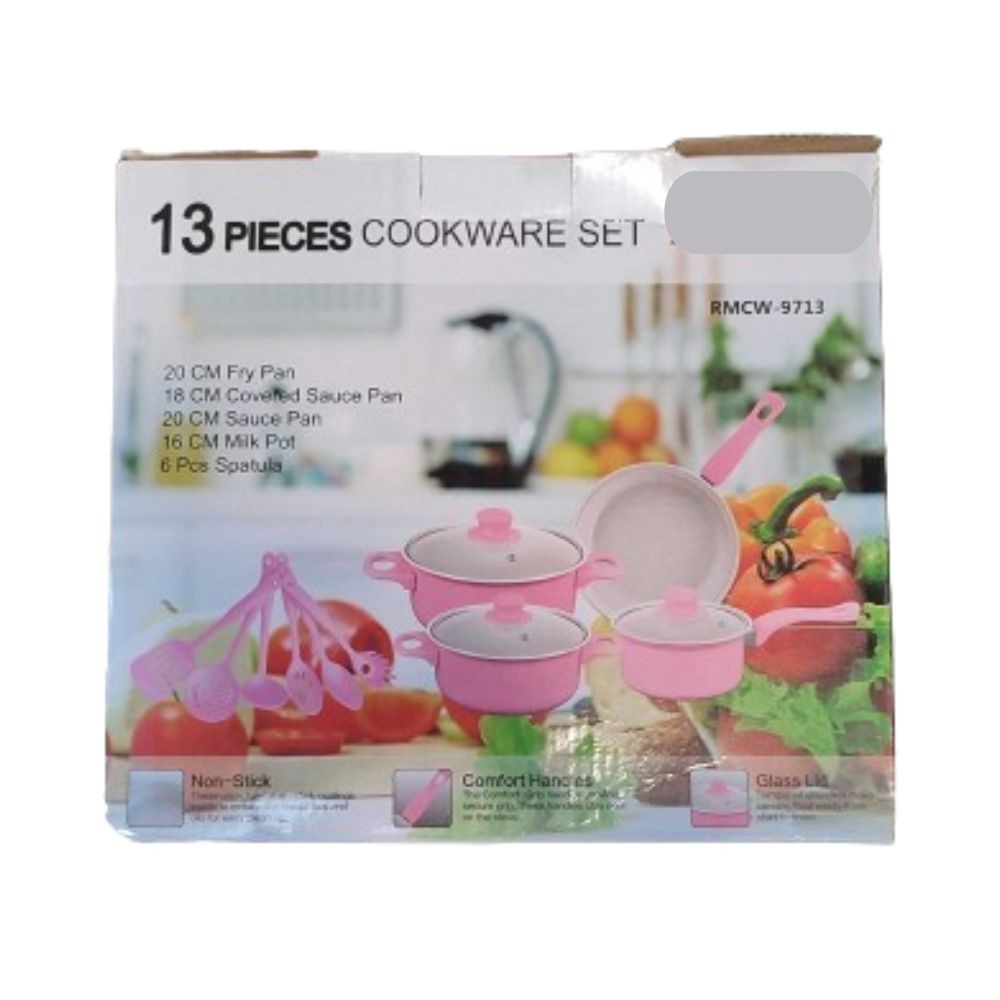 Katies Royal Mark 13-Piece Cookware Set Non-Stick Ceramic Cool Handles Glass Lids