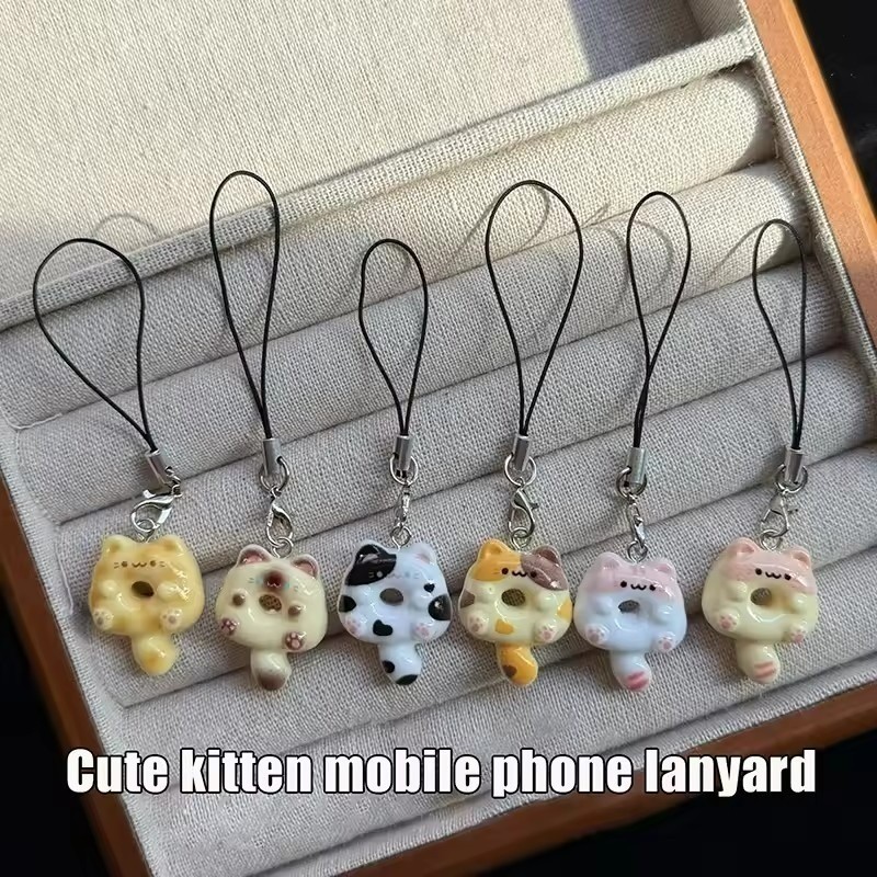 Kawaii Cat Phone Charms Pendant Accessories Cartoon Keychains Cute Phone Bags Chain Pendants Decoration DIY Gift For Girls