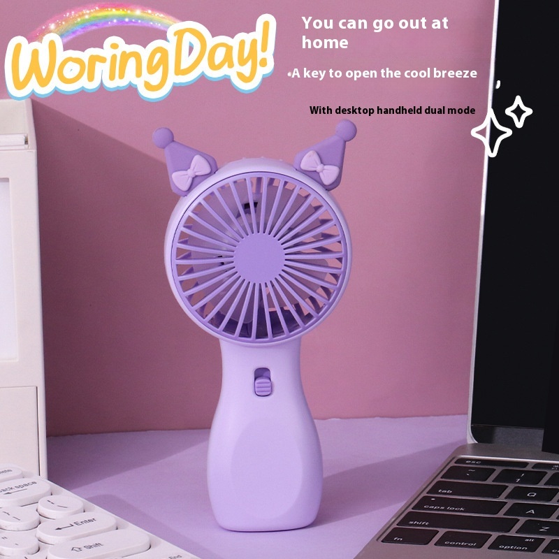 Kawaii Cute Sanrio Kuromi Cinnamoroll Small Fan Handheld Fan Usb Charging with Night Light Two Wind Speeds Birthday Girls Gif