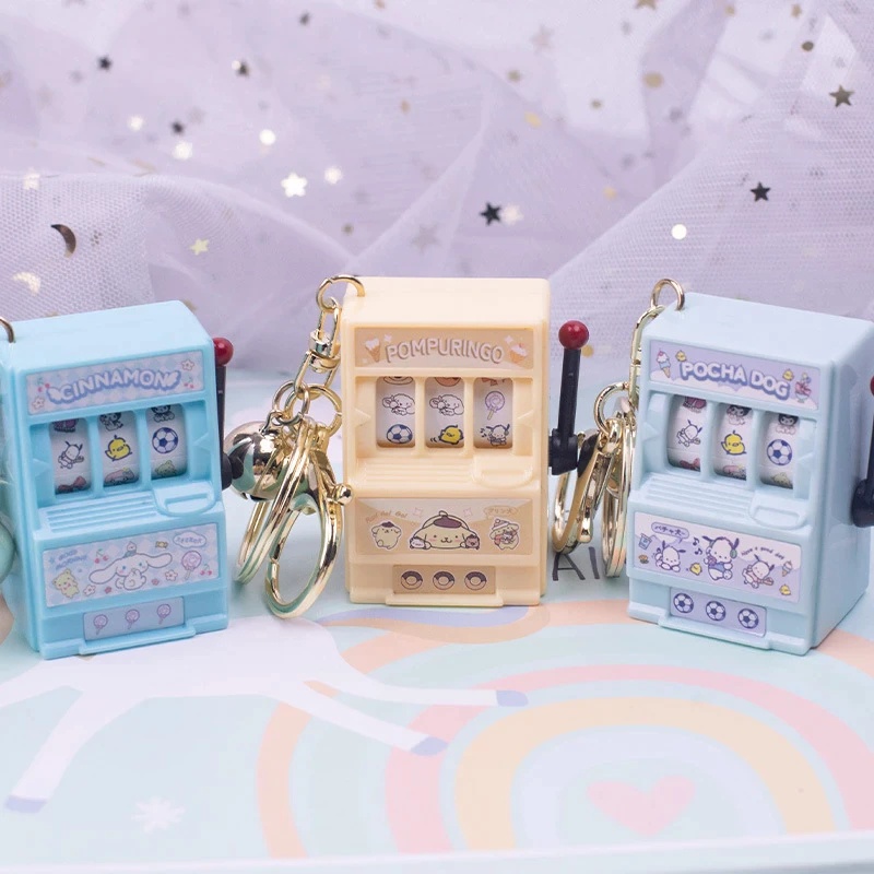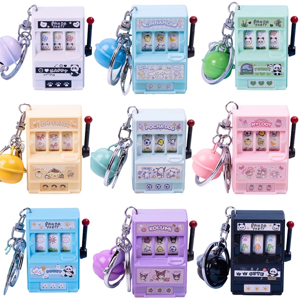 Kawaii Sanrio Casino Game Console KeyChain Melody Cinnamoroll Kuromi Cute Fashion Mini Simulation Turn Machine Keychain Toy Gift