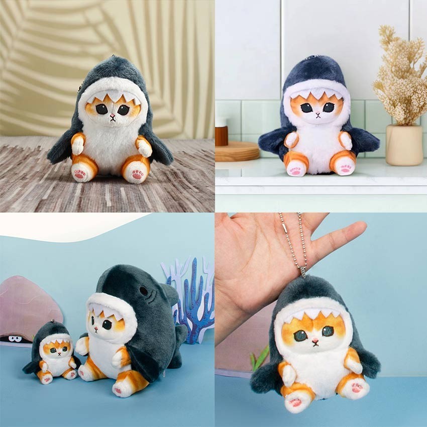 Kawaii Shark Cat Plush Doll Keychain Cartoon Cute Mofusand Anime Stuffed Toy Christmas Gifts